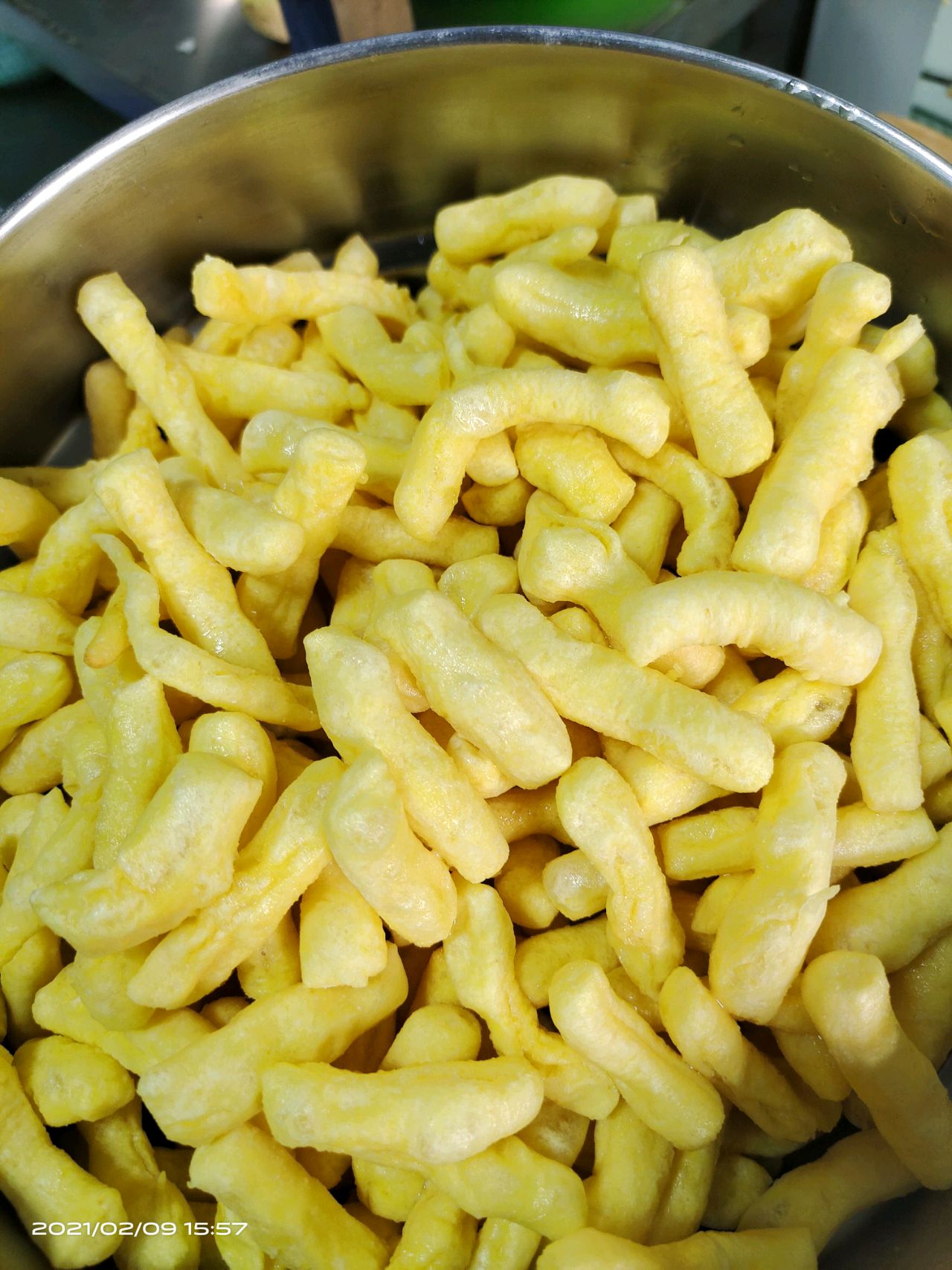 步骤8、再改短条,面上撒一点玉米淀粉这个时候锅中倒入足够的无味油,烧至用筷子探探、冒泡泡