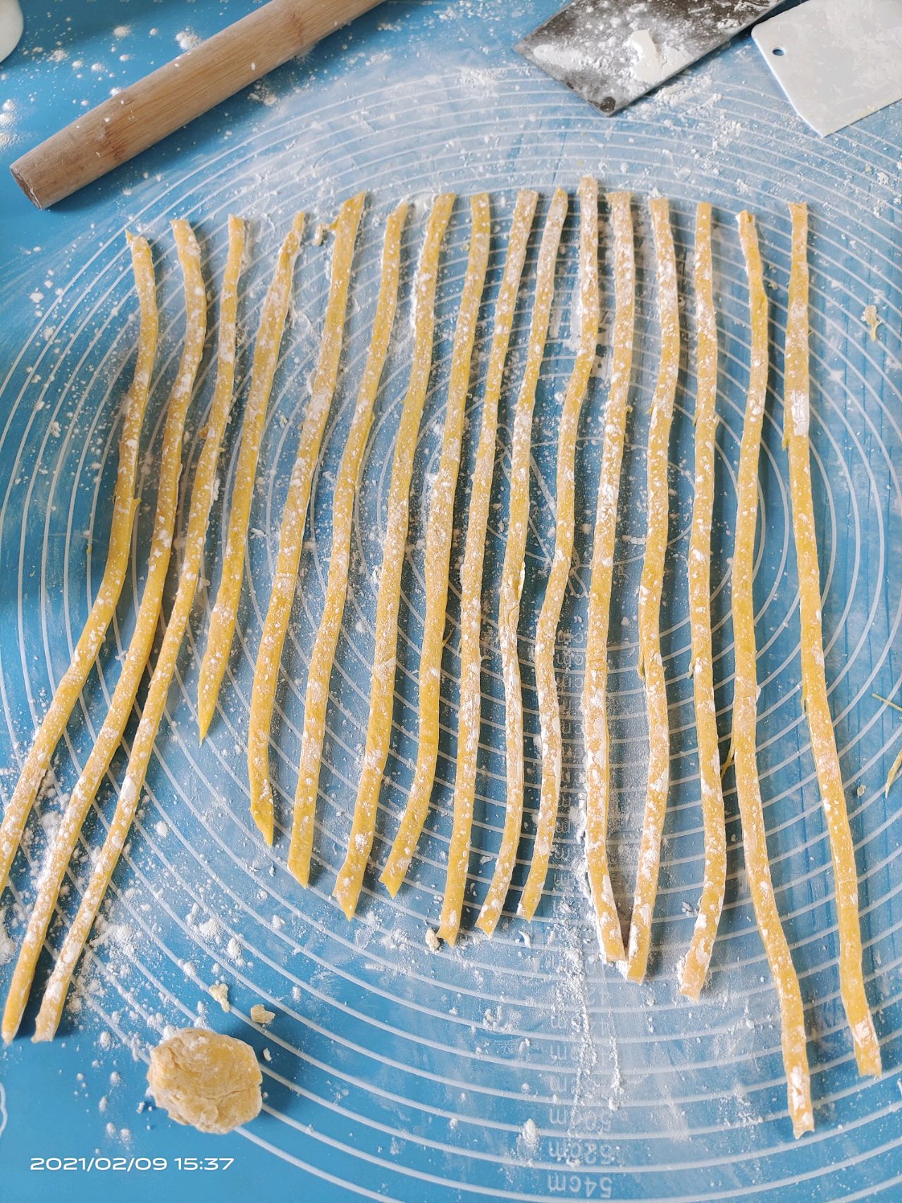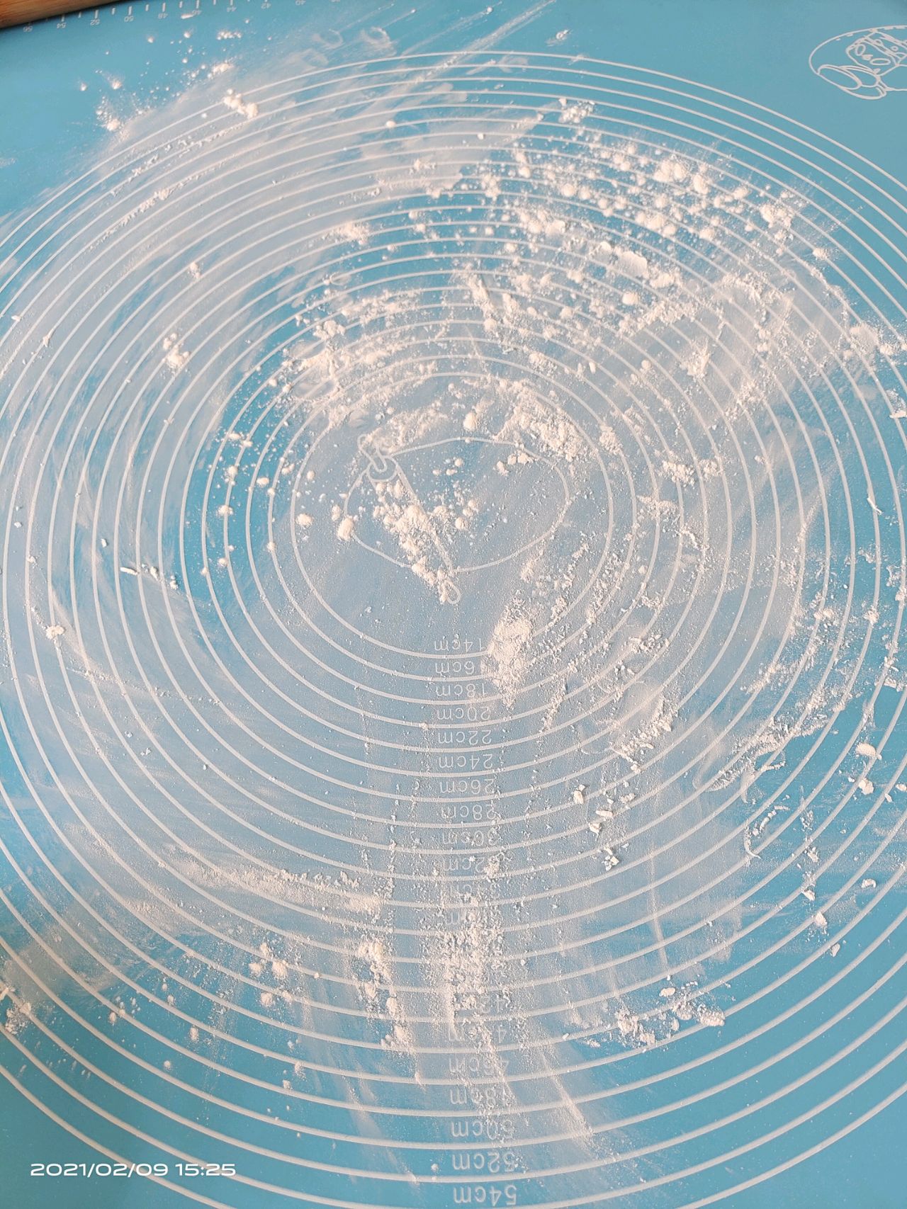 步骤6、整长形,擀面杖擀成长38cm、宽28cm