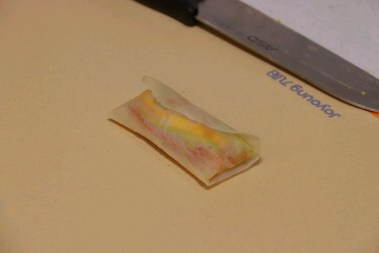 步骤23、全部包好,如果揭开春卷皮食偶有破皮的也没关系,包好也是完整的。