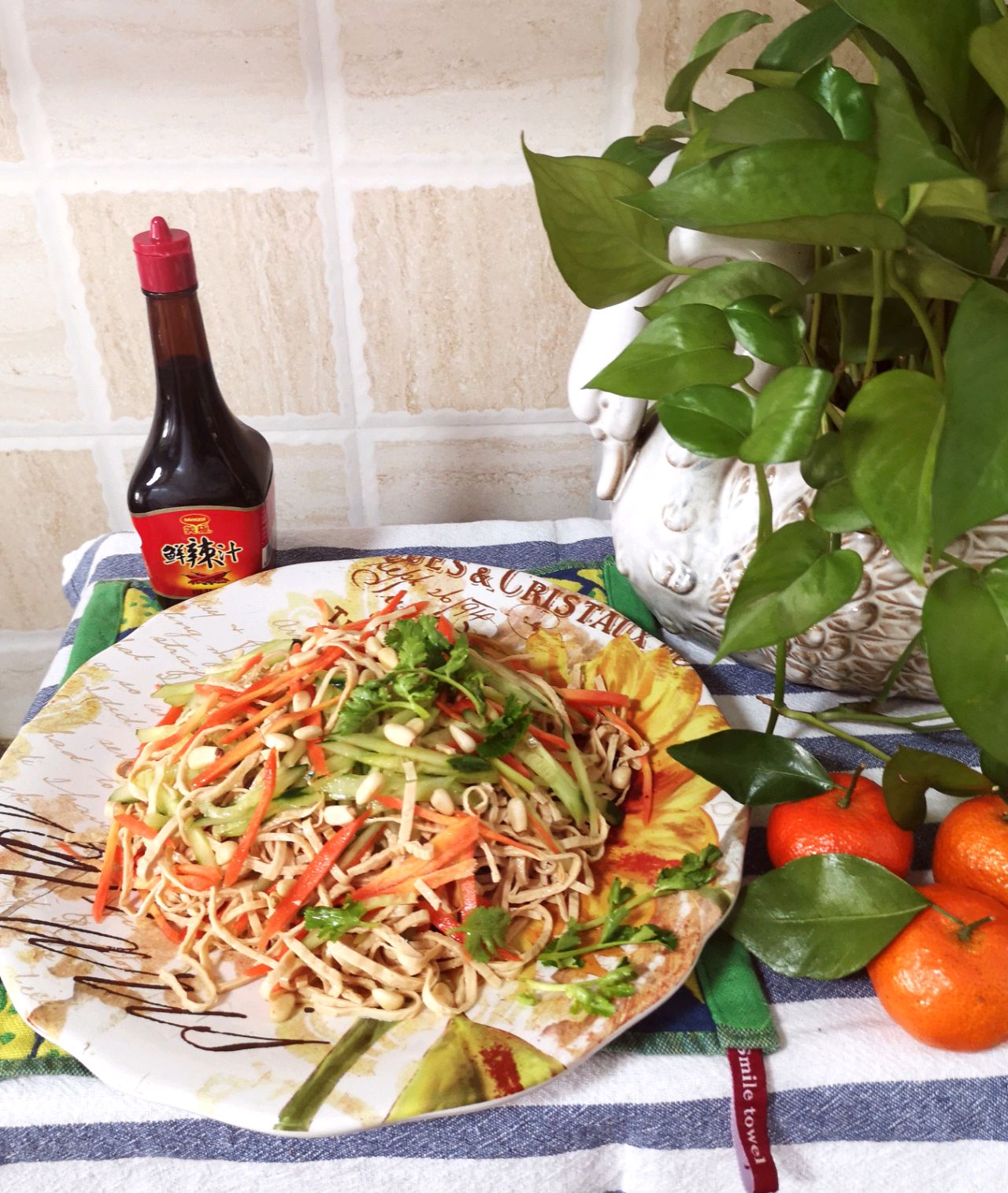 步骤10、美味儿的鲜辣汁三丝就拌好了装盘在撒一些松子仁香菜就可以开吃了…喜欢辣的可以多放点美極鲜辣汁方便又美味儿…