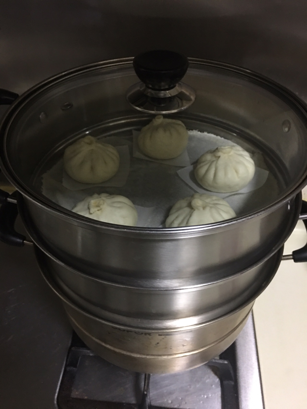 步骤13、包子放入锅里,冷水入锅,先小火煮至水沸。水沸后大火煮15分钟,然后焖5分钟。