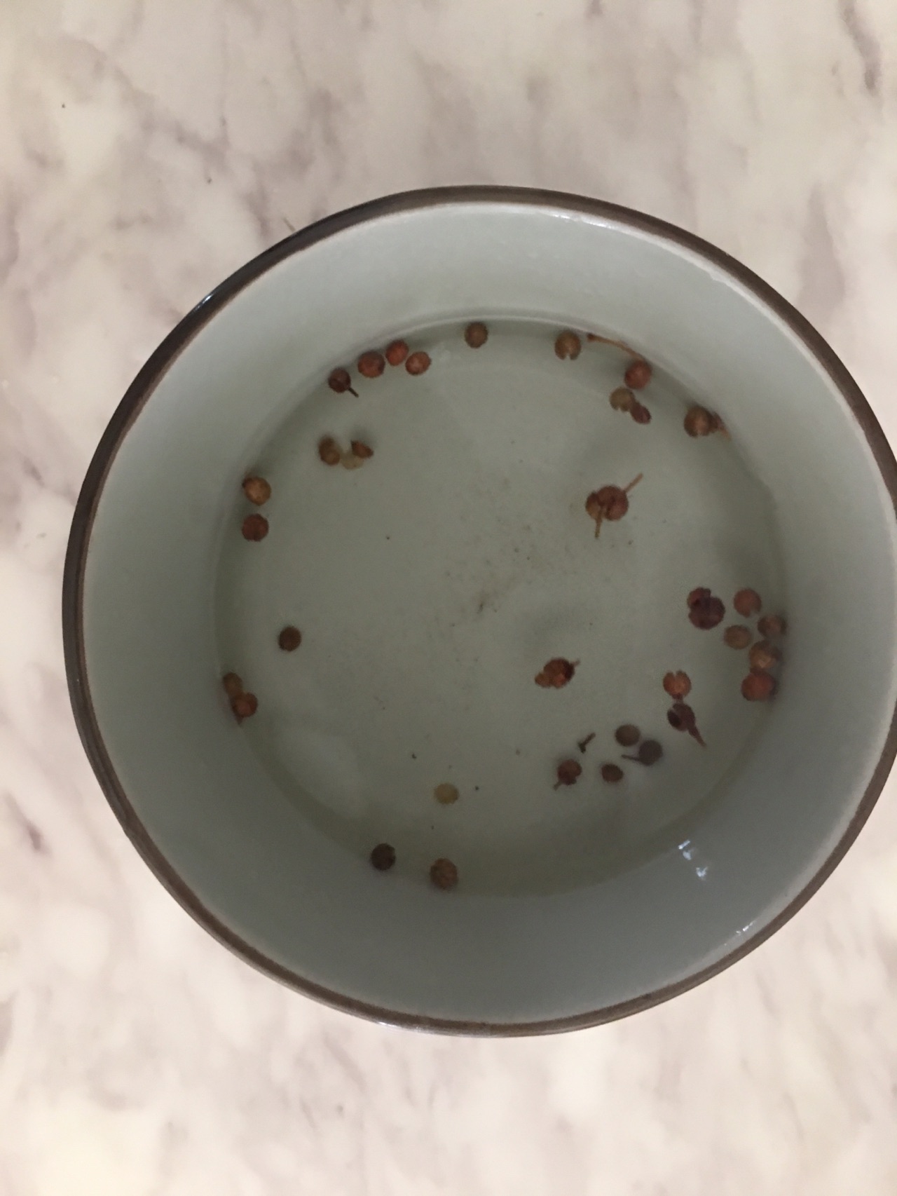 步骤3、花椒加入开水,浸泡出味,晾凉备用。