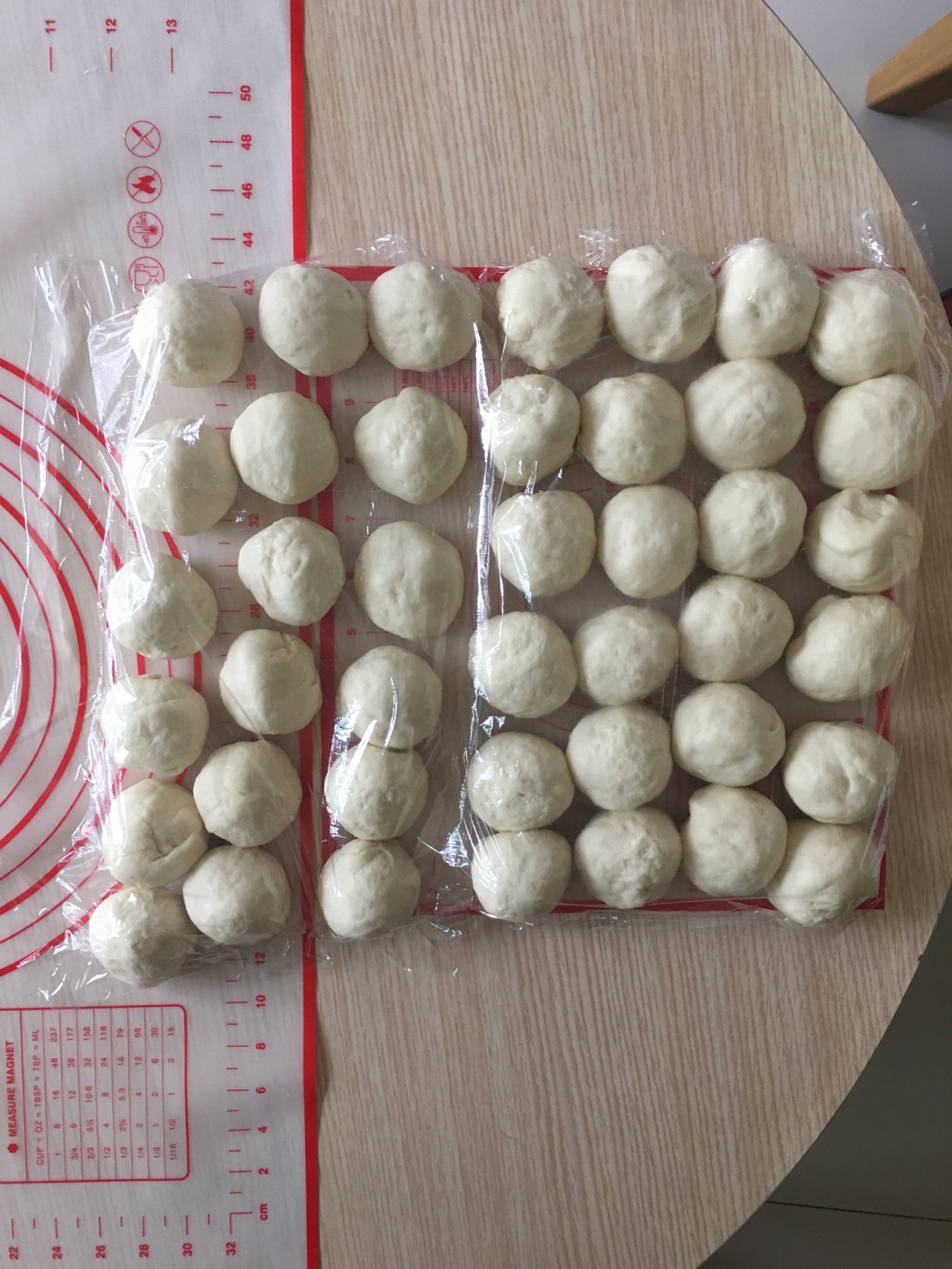 步骤8、把面团平均分成40g每份。盖上保鲜膜,松弛15分钟。