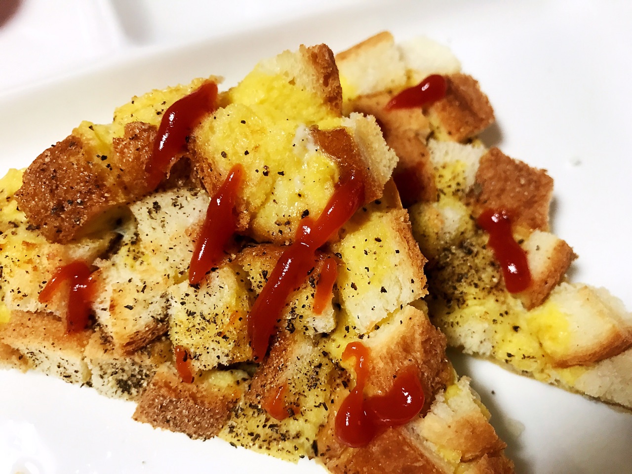 步骤4、出锅,切块,淋上番茄酱就可以享用啦