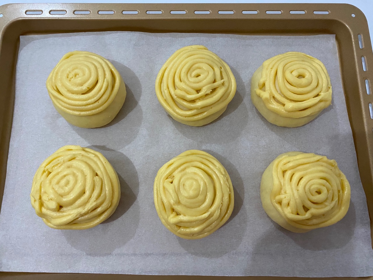 步骤8、装入裱花袋中,面团发酵到2倍大取出