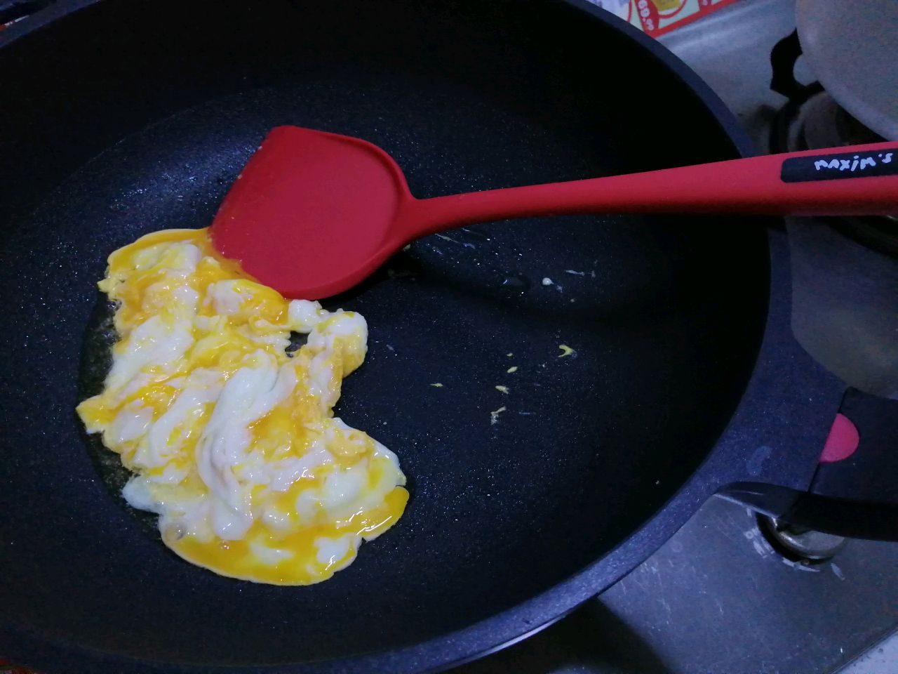 步骤2、锅入油放入鸡蛋炒熟,盛出鸡蛋