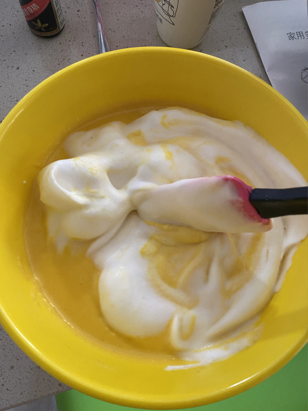 辅料:鸡蛋5个、白砂糖38g、泡打粉1包、香草精几滴、柠檬汁几滴