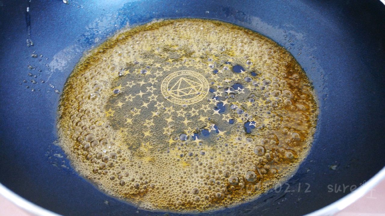 步骤3、根据自己想要糖量往不粘锅里面切黄油,小火耐心把油化开