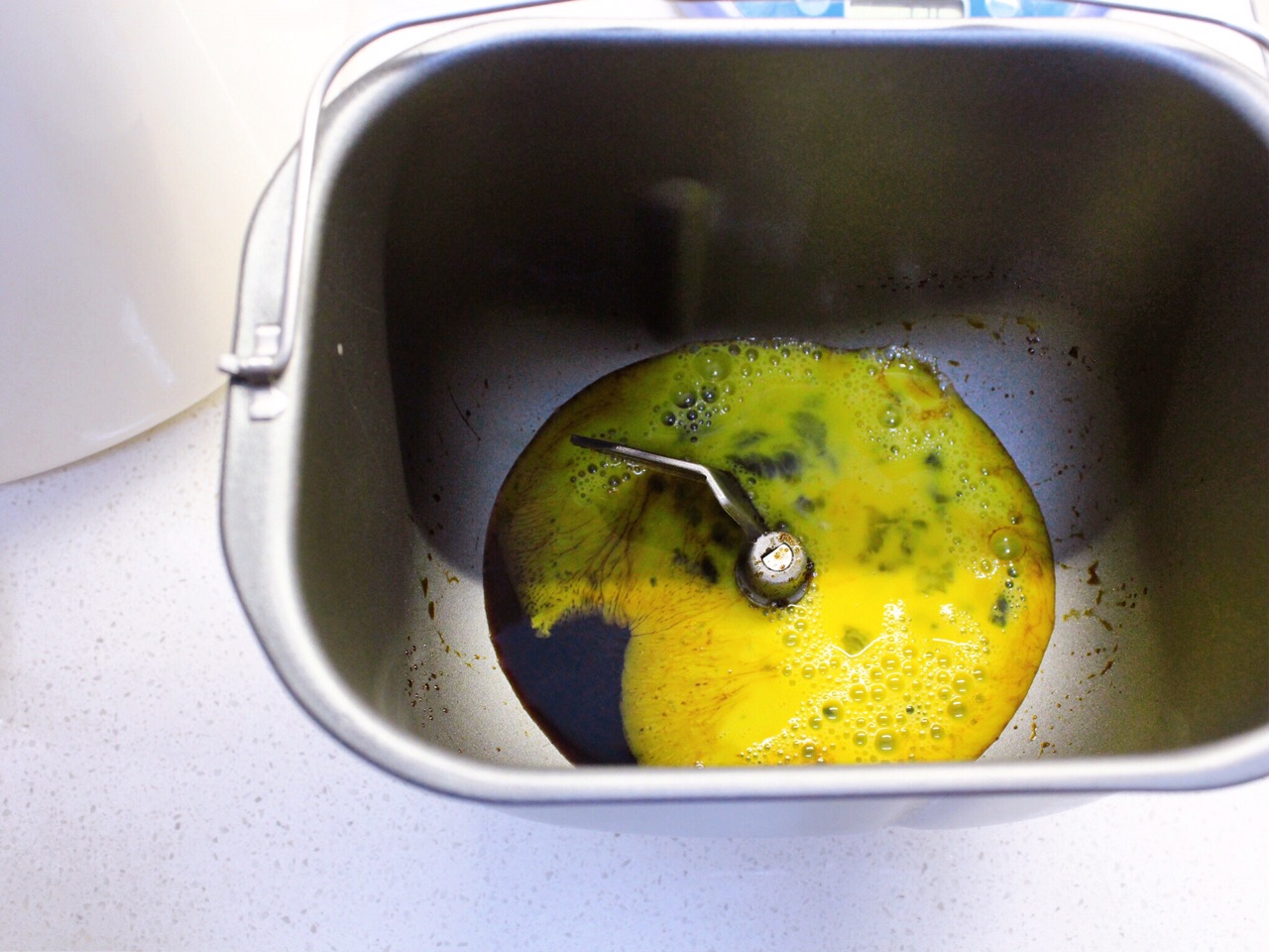 步骤8、启动面包机揉面功能,中间加入软化好的黄油15克,揉成光滑的面团,盖好发酵至2倍大;