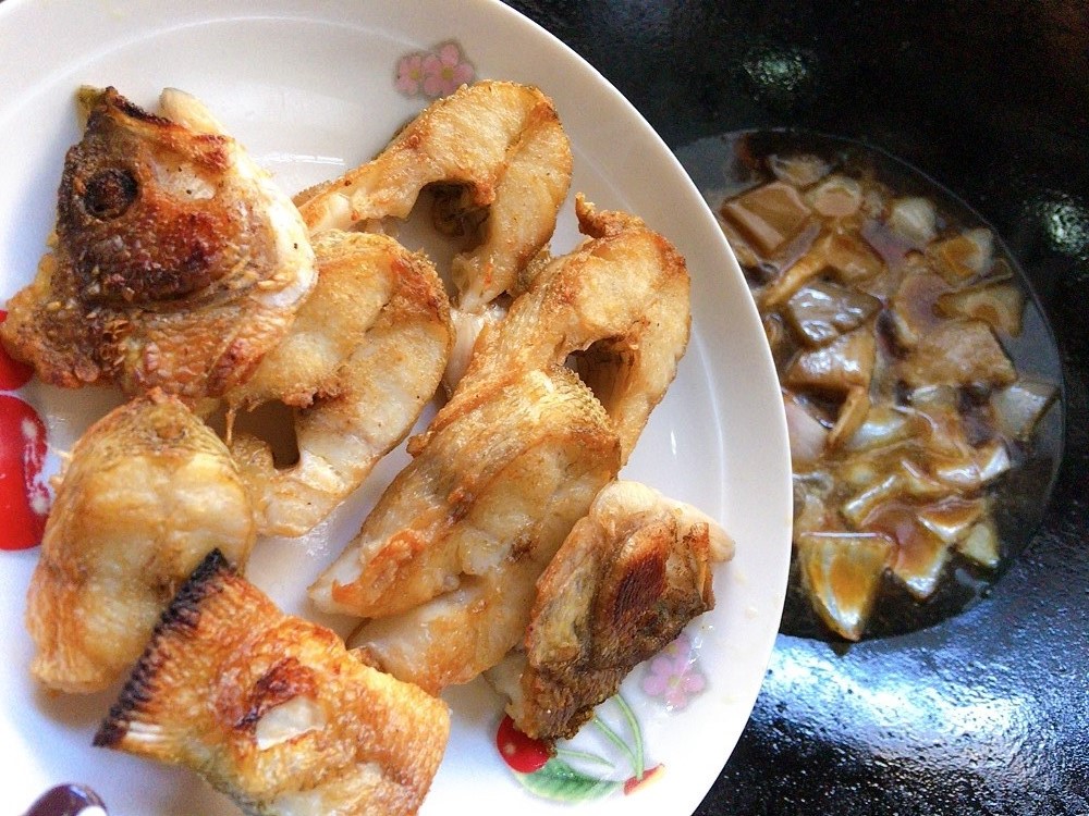 步骤15、因为鱼块没有进行腌制,要纯粹的去吸收这酱汁
