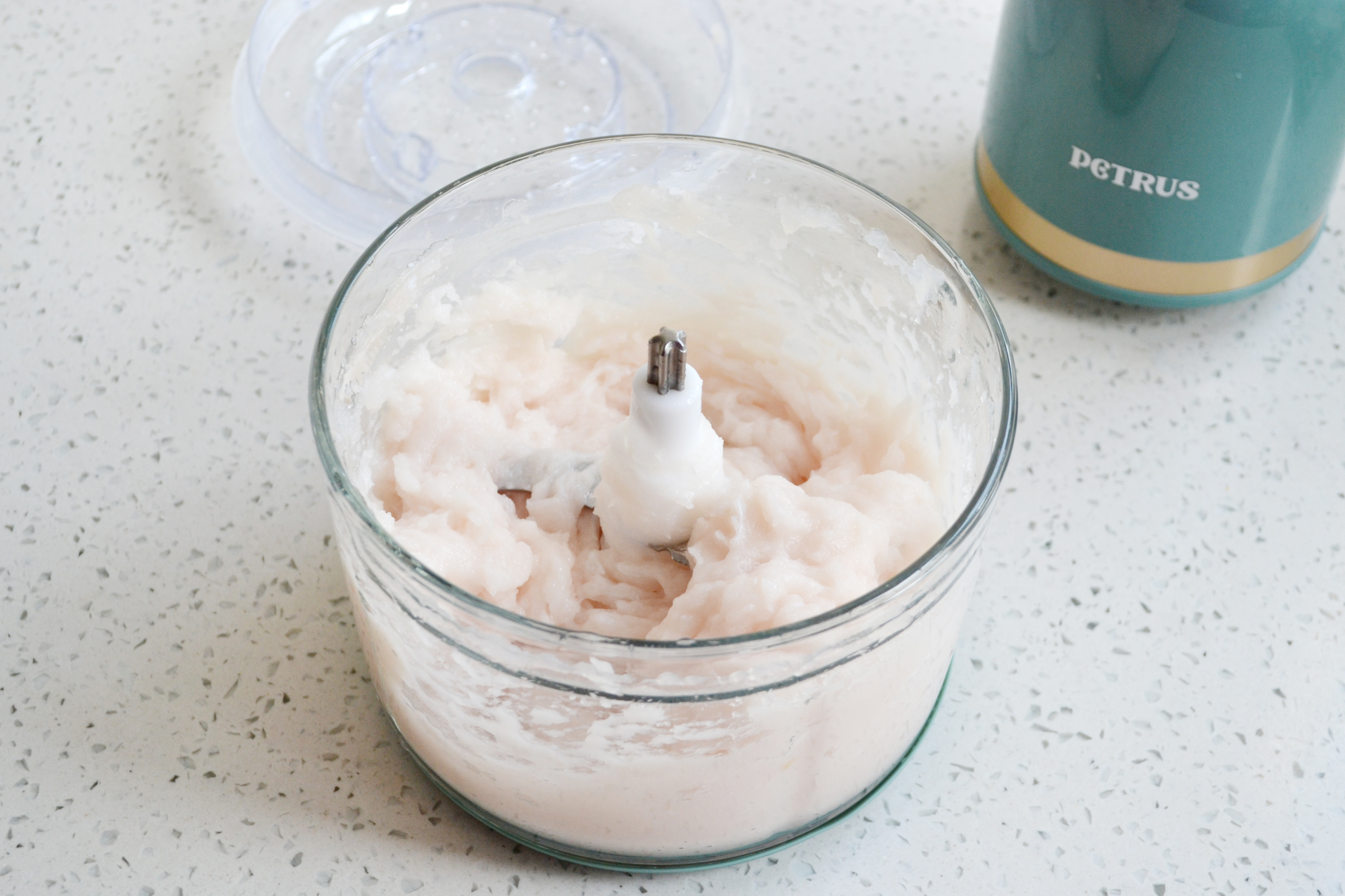 步骤3、巴沙鱼片先放入柏翠无线绞肉机中打成肉泥。