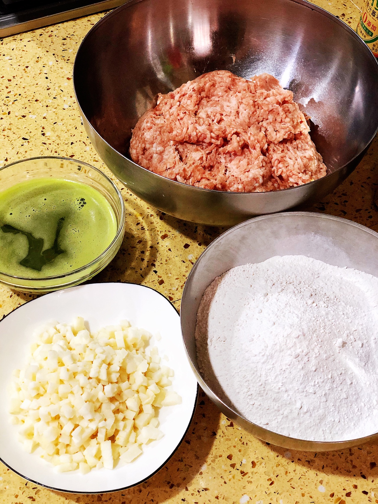 步骤1、我这是2斤半前腿肉绞成肉馅半斤马蹄切丁葱姜各一两洗净炸圆子的猪肉馅对部位没有局限前腿后腿五花都OK自己喜欢就好一般炸纯肉圆子比例是肥瘦3:7左右如果炸传统的肉圆子肥瘦比例建议4:6因为传统的圆子里面会加豆腐和糯米饭肥肉略多些口感更好