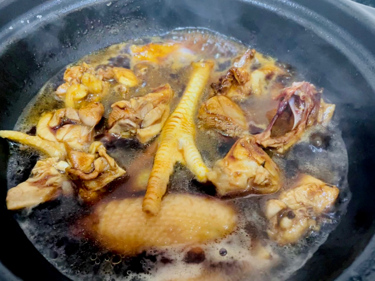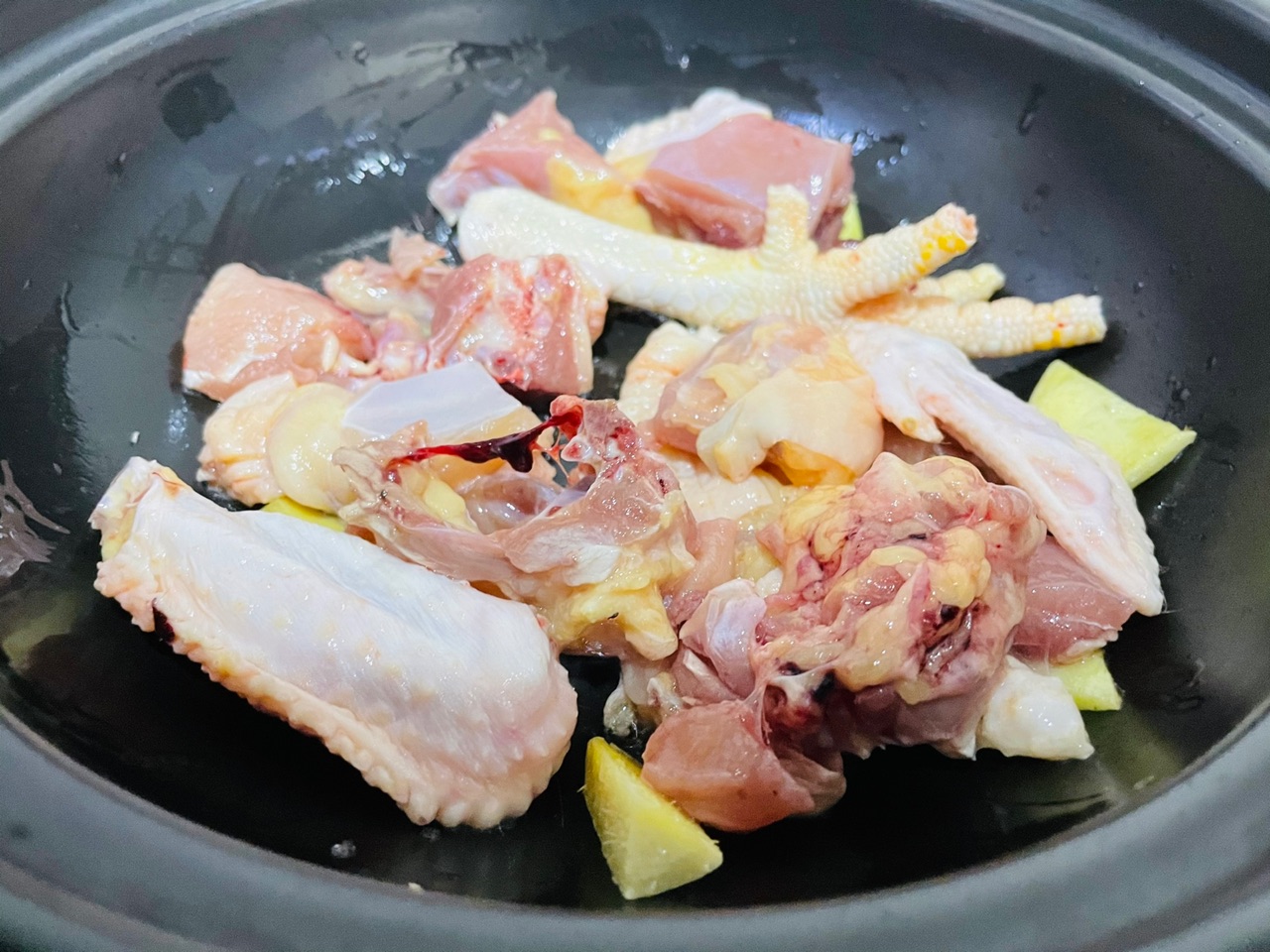 2.建议加开水,这样鸡肉在这个过程中温度不会变,鸡肉会更嫩,汤也很鲜。