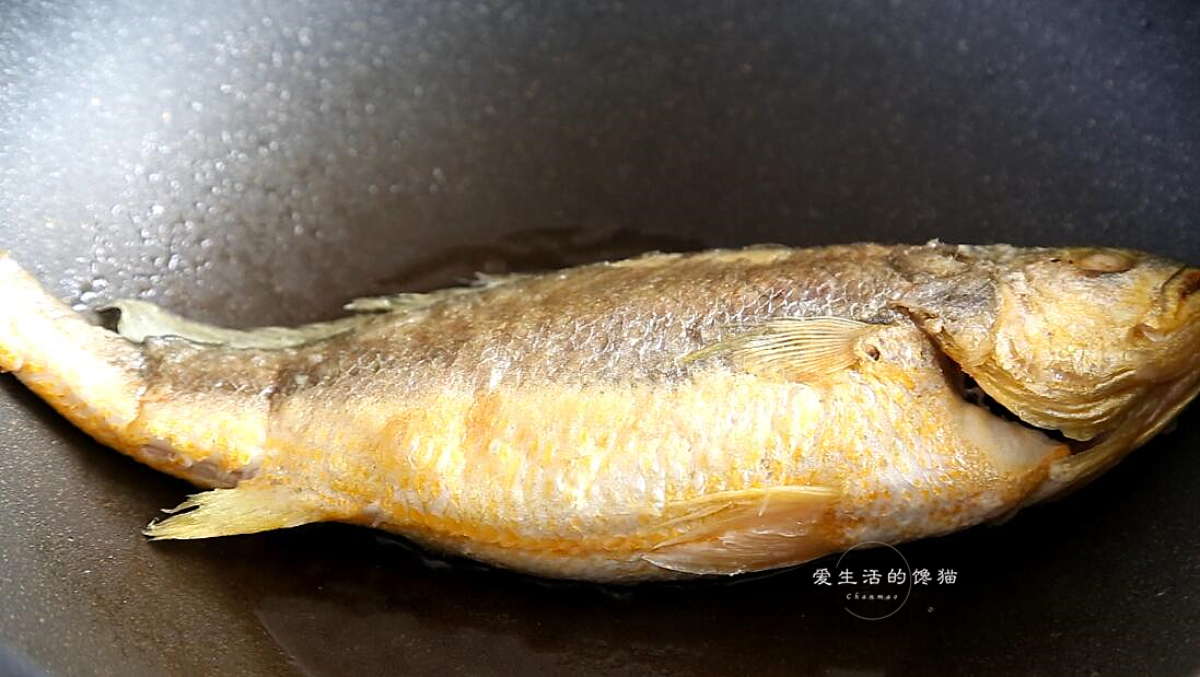 步骤4、热锅放油,把黄花鱼放入锅里煎到两面金黄,铲出备用