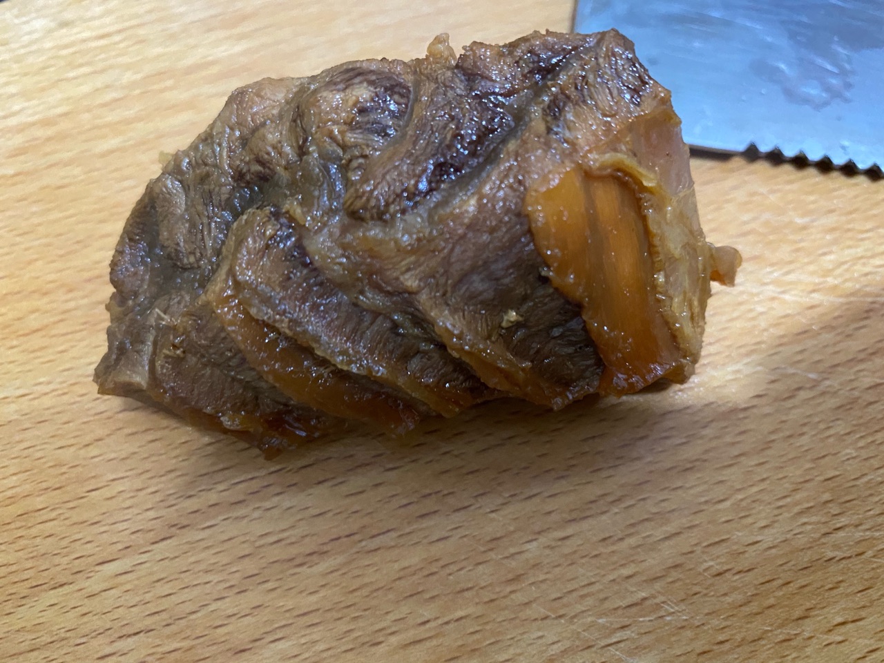 步骤15、这个是一小时拿出来的模样,肉质比较有嚼劲,适合来点蘸料直接下酒。