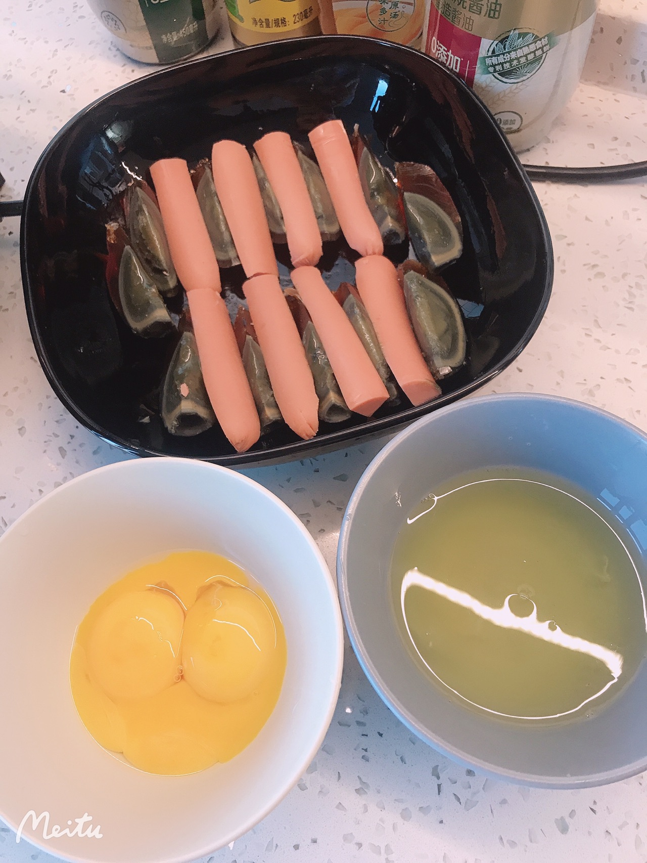 步骤4、倒入蛋清液没过食材上锅蒸五分钟左右成行了就可以倒入蛋黄液再蒸五分钟基本就熟了