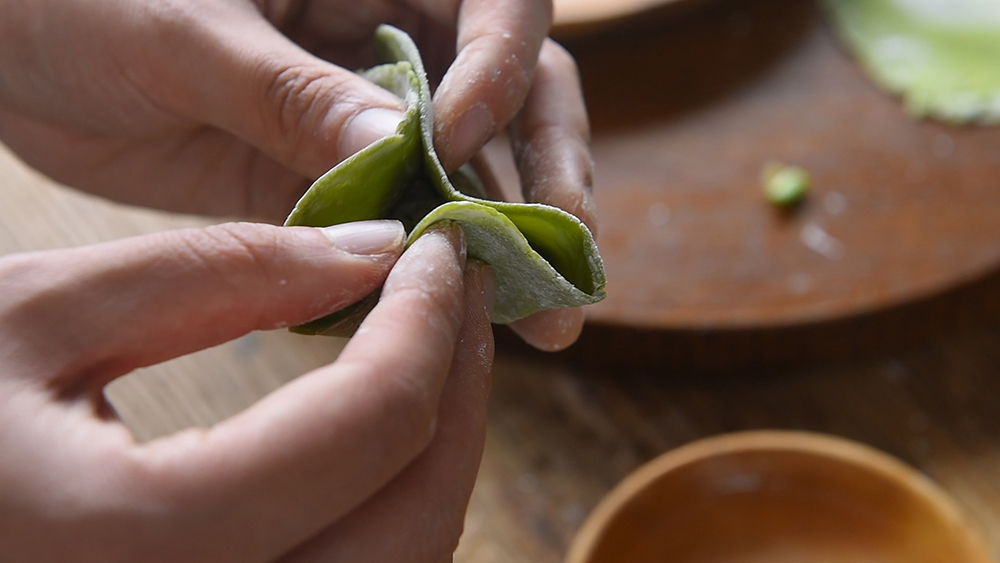 加入适量菠菜汁,即可做出青白相间的饺子皮~
