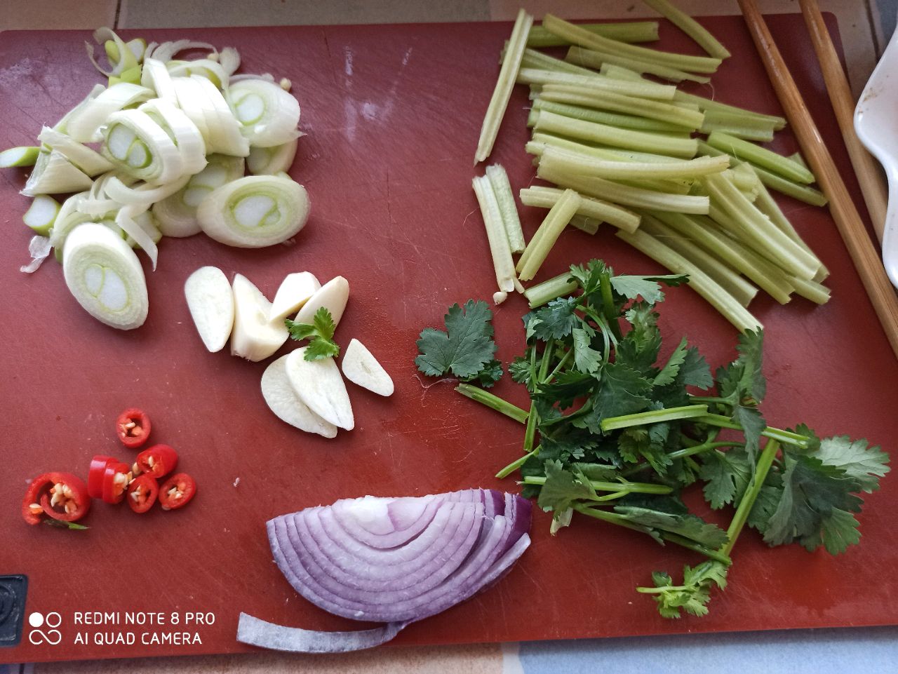 辅料:面包糠1小碗、葱段姜片适量、盐适量、料酒1大勺、胡椒粉少许、香芹适量