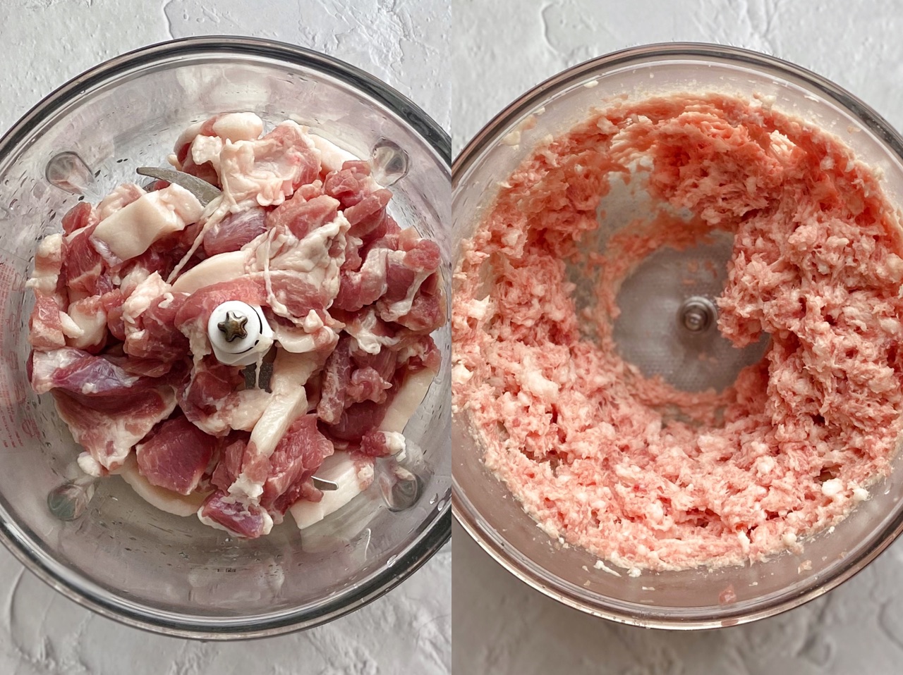 步骤2、选用3分肥7分瘦的新鲜猪肉,用绞肉机搅成肉末。