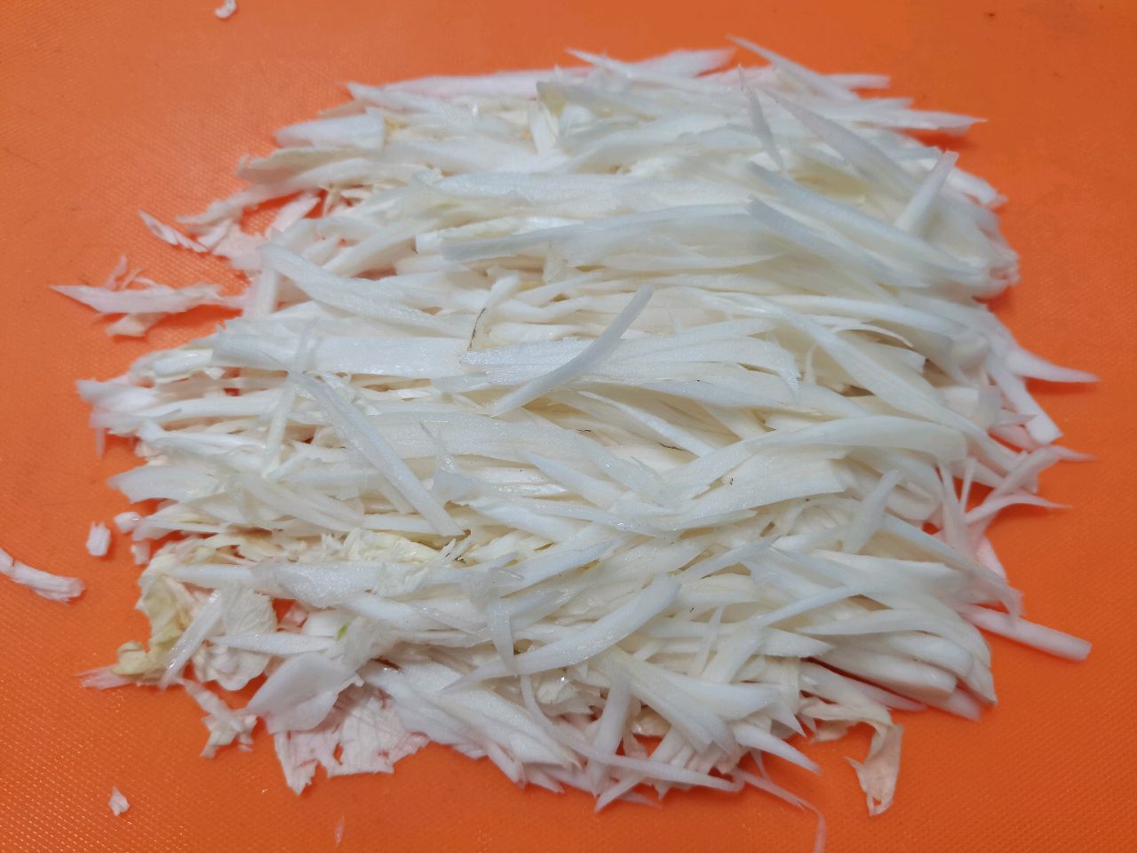 我喜欢把白菜切成竖丝,喜欢吃辣可以放些辣椒油