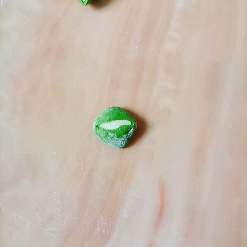 步骤5、取白色面团搓成长条,绿色面团擀成长度一致的长方形