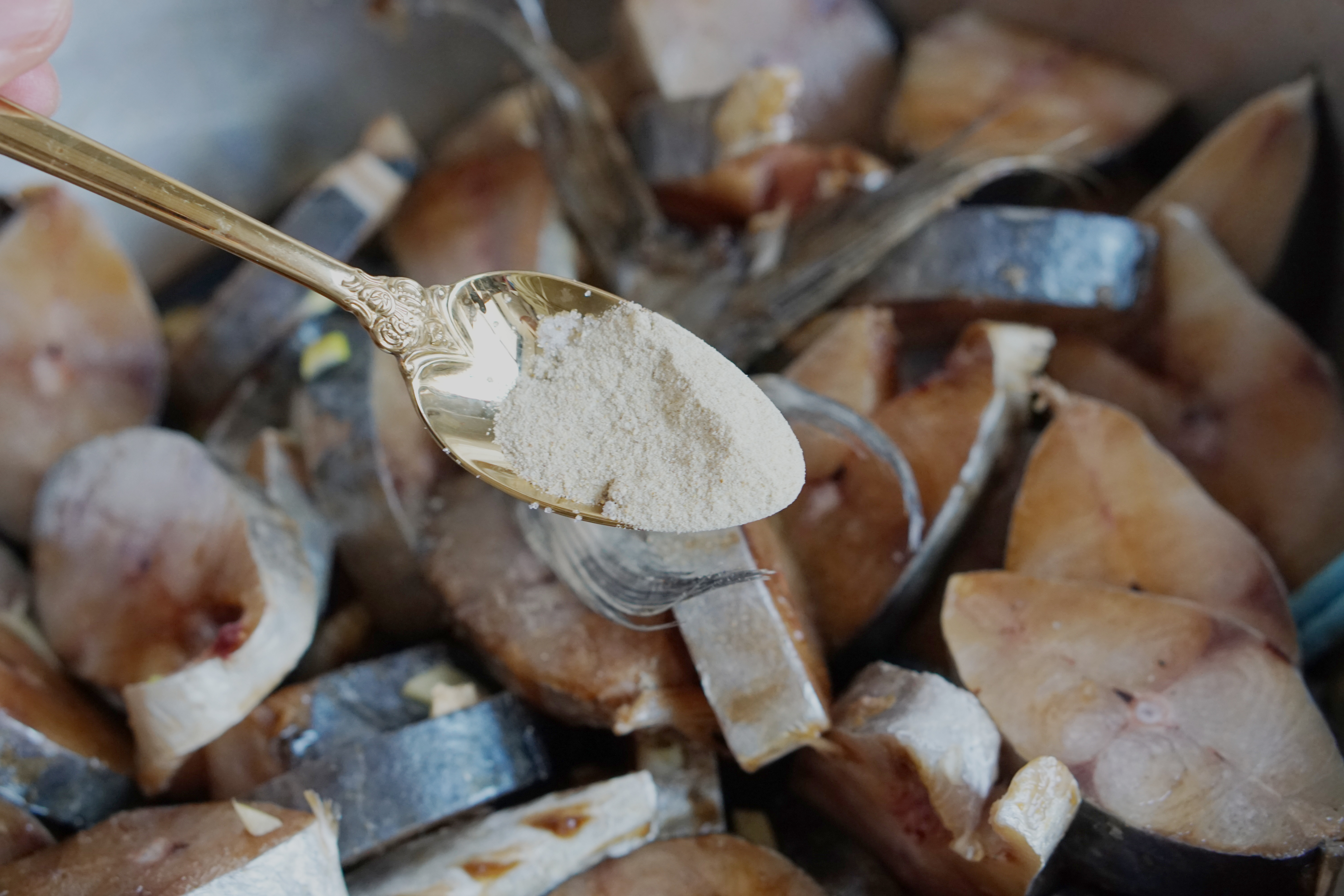 辅料:料酒1勺、白胡椒粉1茶匙、葱姜适量、白糖1茶匙