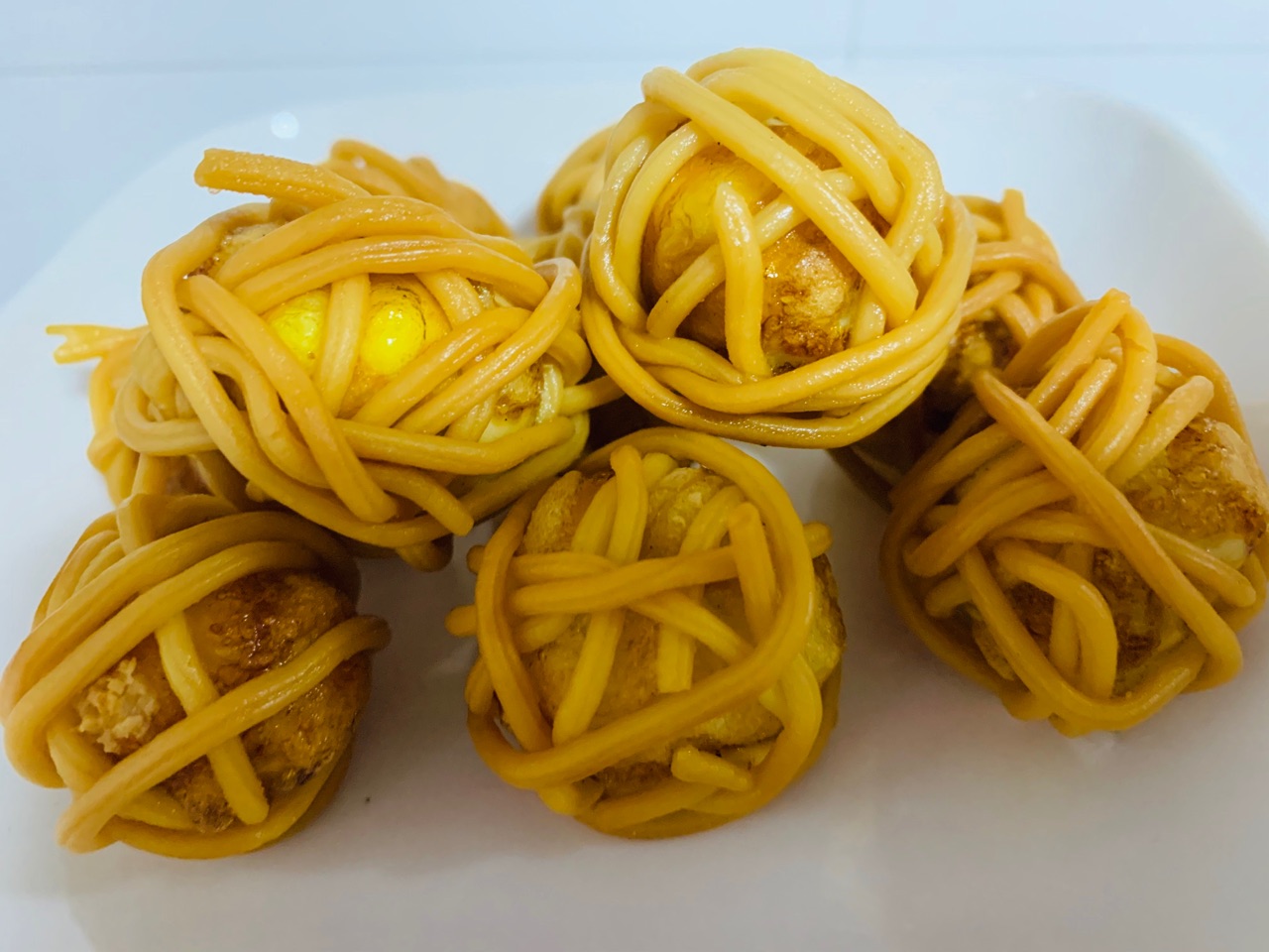 因为煮熟的蛋有点水分,刚下锅会有点炸油出来,建议大家提前把蛋的水分晾干就不会炸油了!