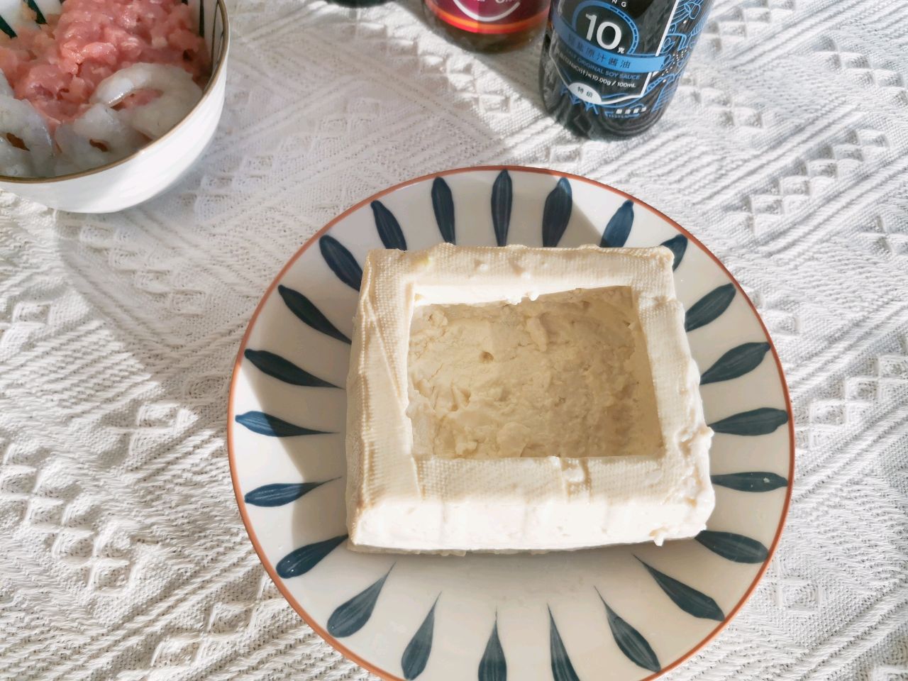 步骤4、豆腐挖洞,挖下来的豆腐不要扔