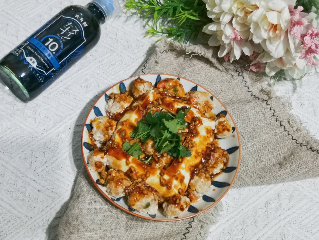步骤5、把除了老抽,淀粉和蒜末的其他调料放入,加上挖出的豆腐,搅拌均匀