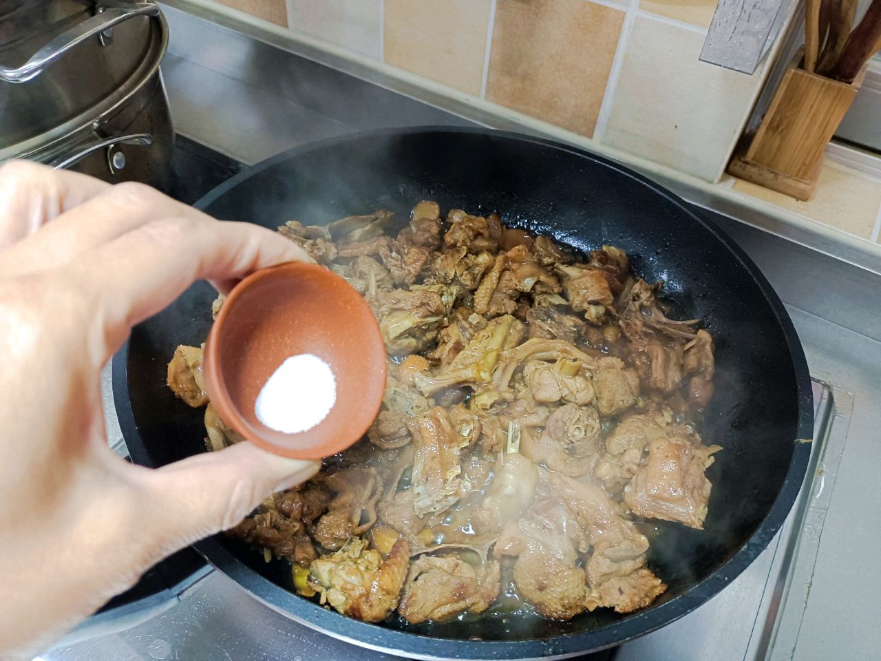 步骤15、煮至汤汁收干放入食盐,即可出锅。