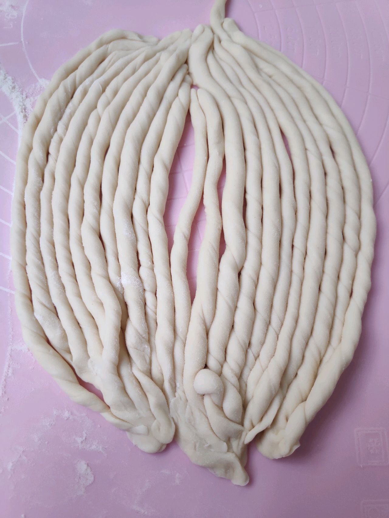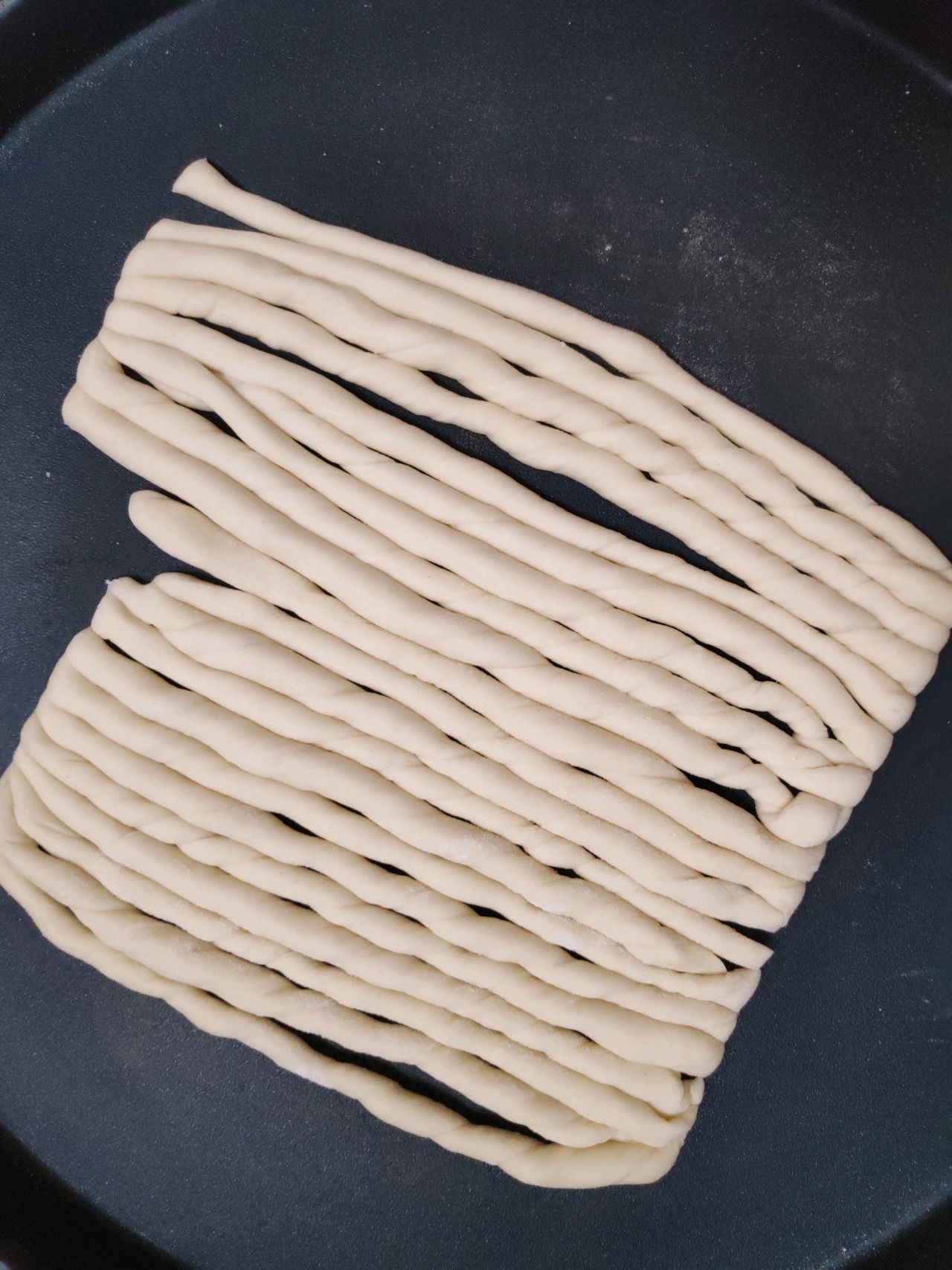 步骤5、擀成长方形,再切块2-3cm宽的长条