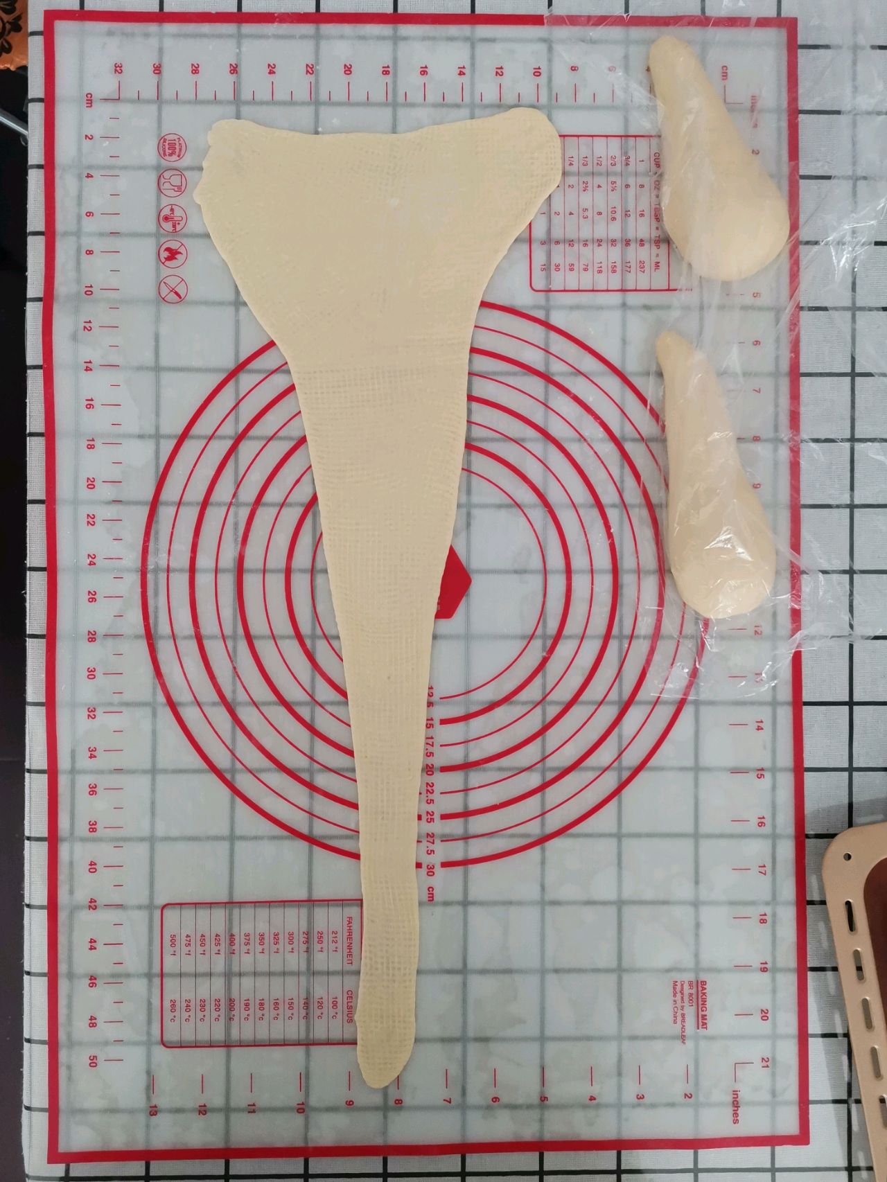 步骤6、分成6份,搓成胡萝卜形,醒发15分钟左右。