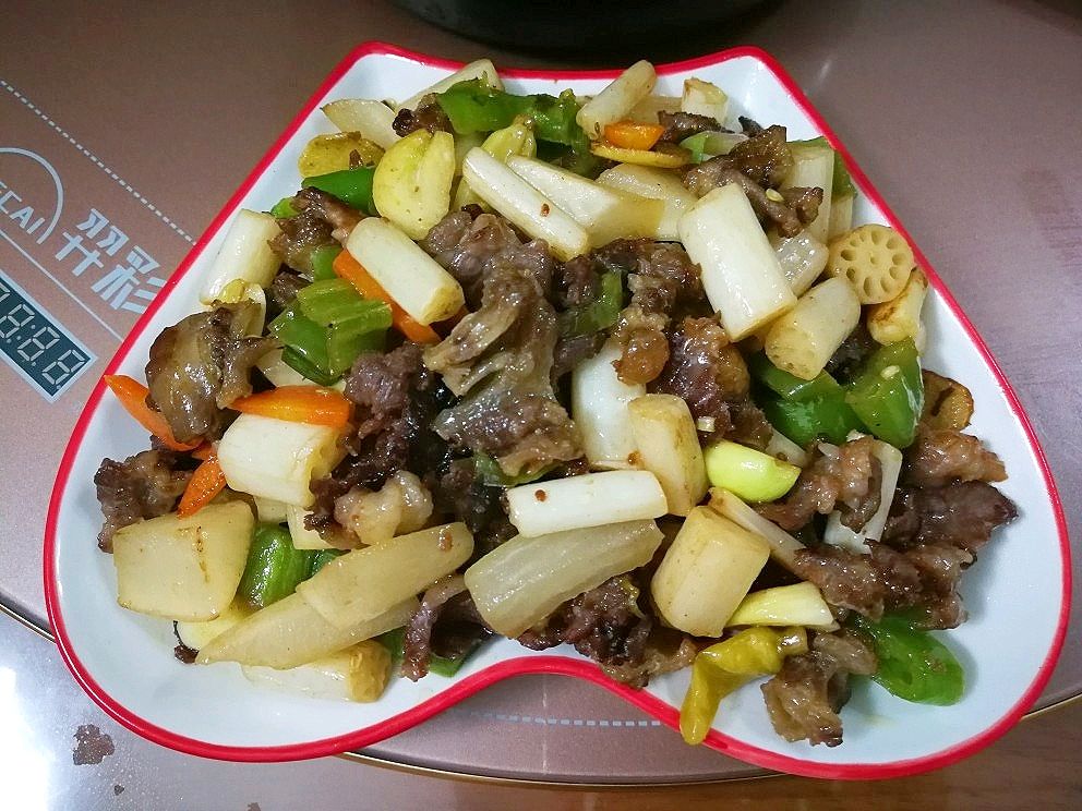 辅料:酸罗卜适量、青椒1个、姜葱蒜适量、料酒2勺、生抽2勺、生粉1勺