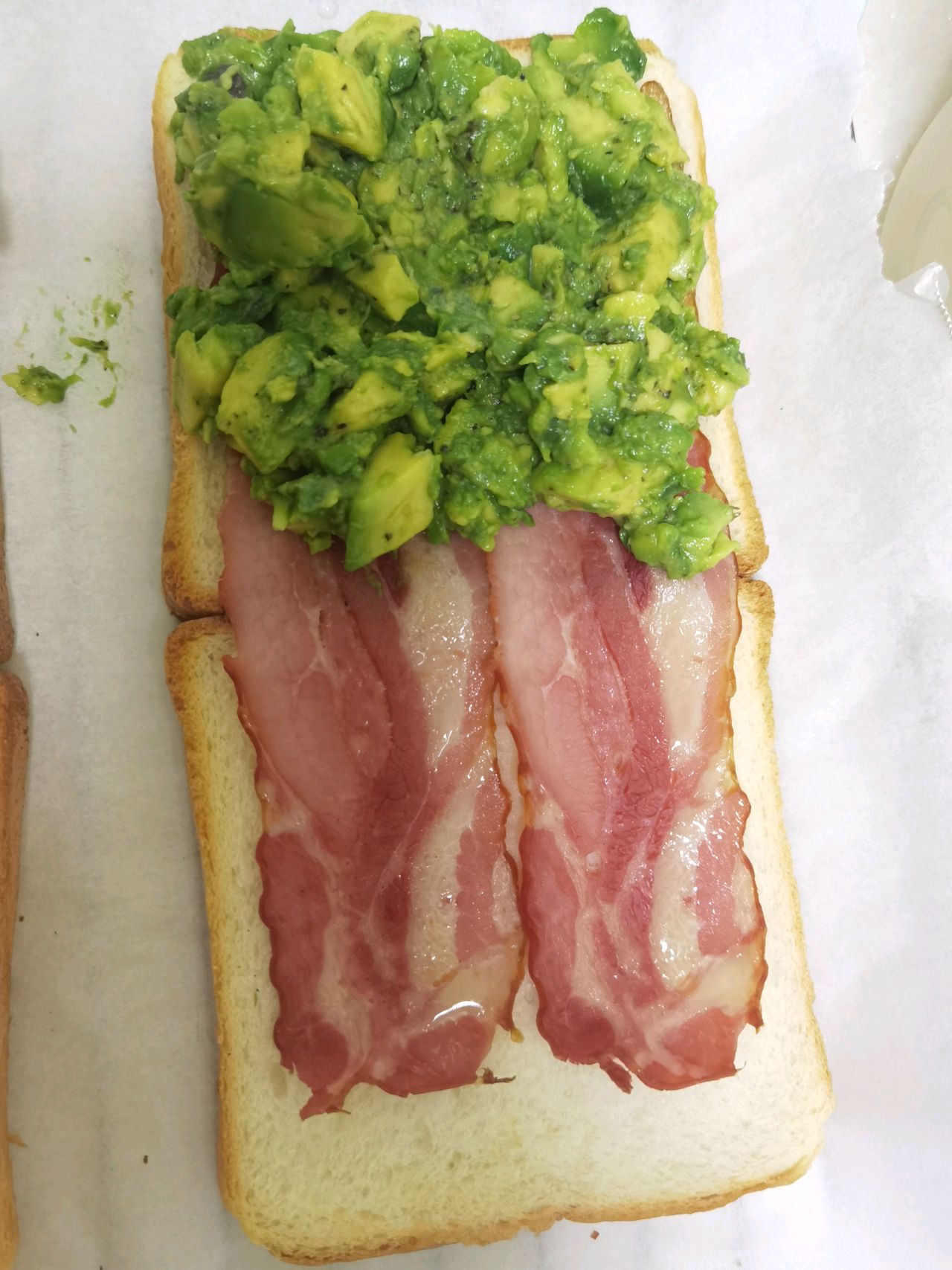 1.我选的培根是有咸味儿的,所以不用加盐了。如果用的是没什么味道的培根,可以在牛油果里加一点点盐调味。