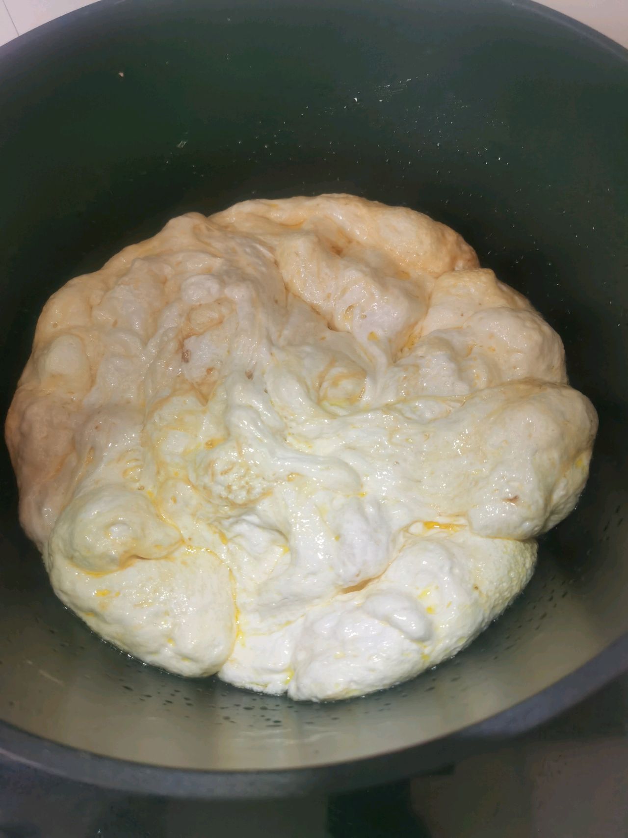 步骤4、棉花糖熬成图片样子就可以放入奶粉搅拌均匀