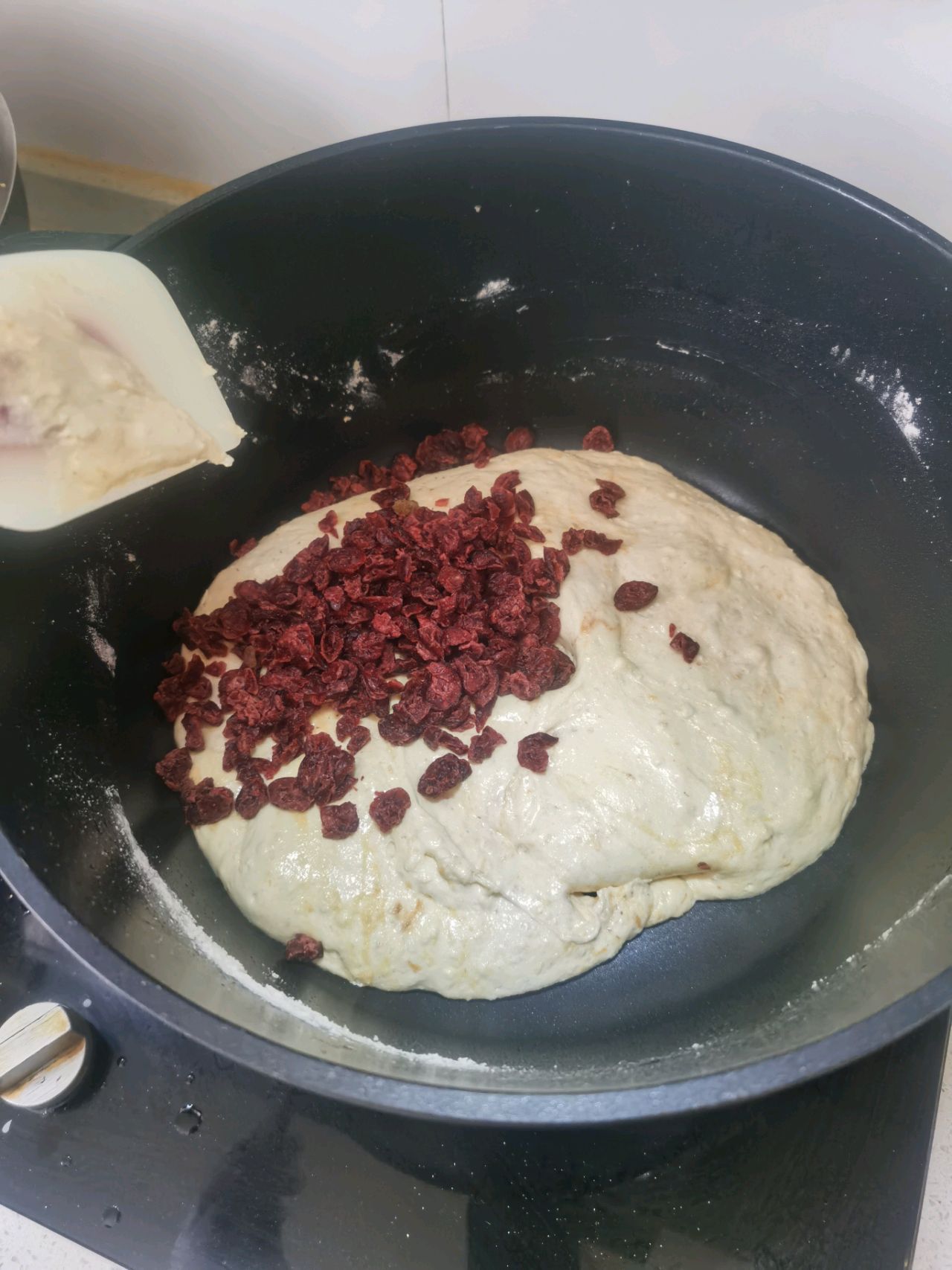 步骤5、放入蔓越莓干、坚果搅拌均匀