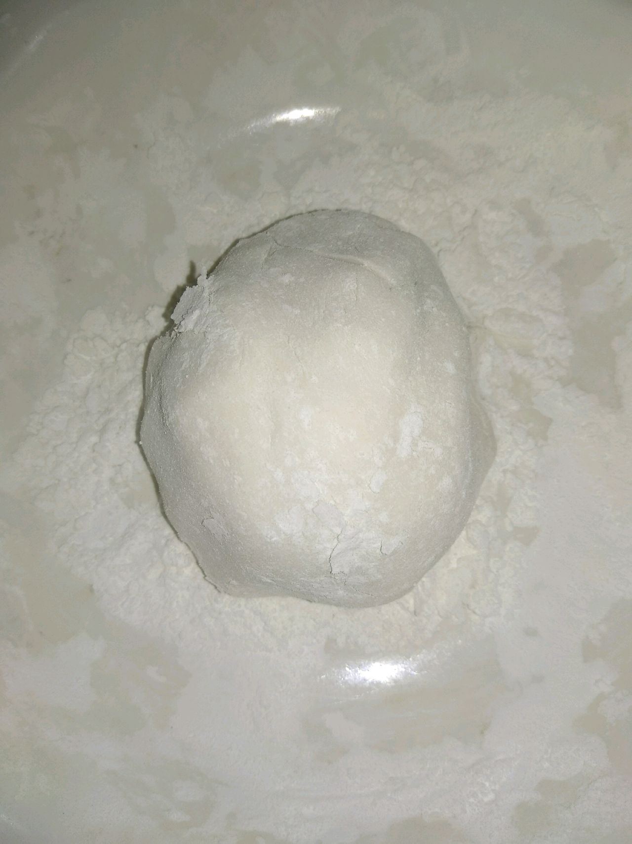 步骤1、把水磨糯米粉、粘米粉、澄面,加入适量的热开水。揉成不粘手的面团。静止20分钟。