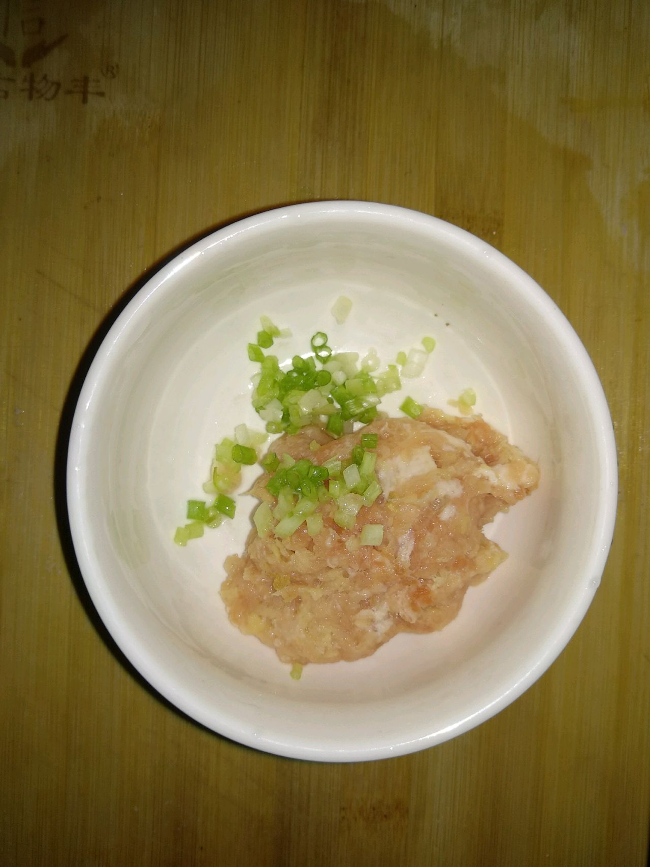 步骤2、把瘦肉、姜末,葱花剁碎。