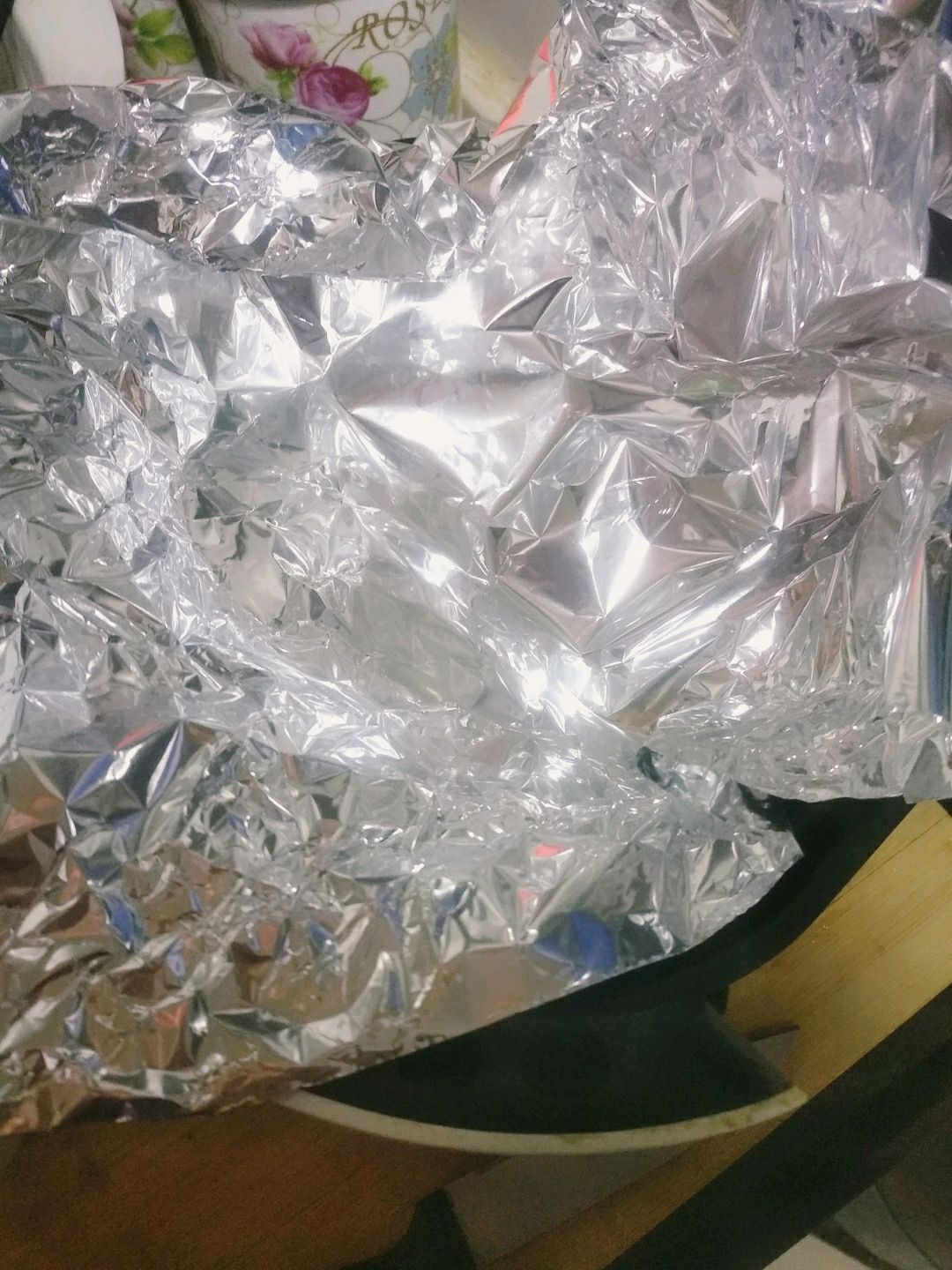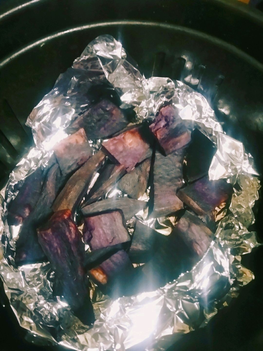 步骤4、空气炸锅放入踢纸垫底