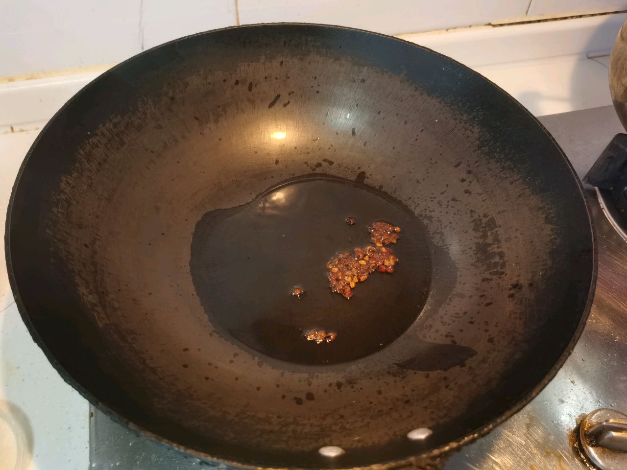 步骤2、锅中到油放花椒,准备煸炒豆角