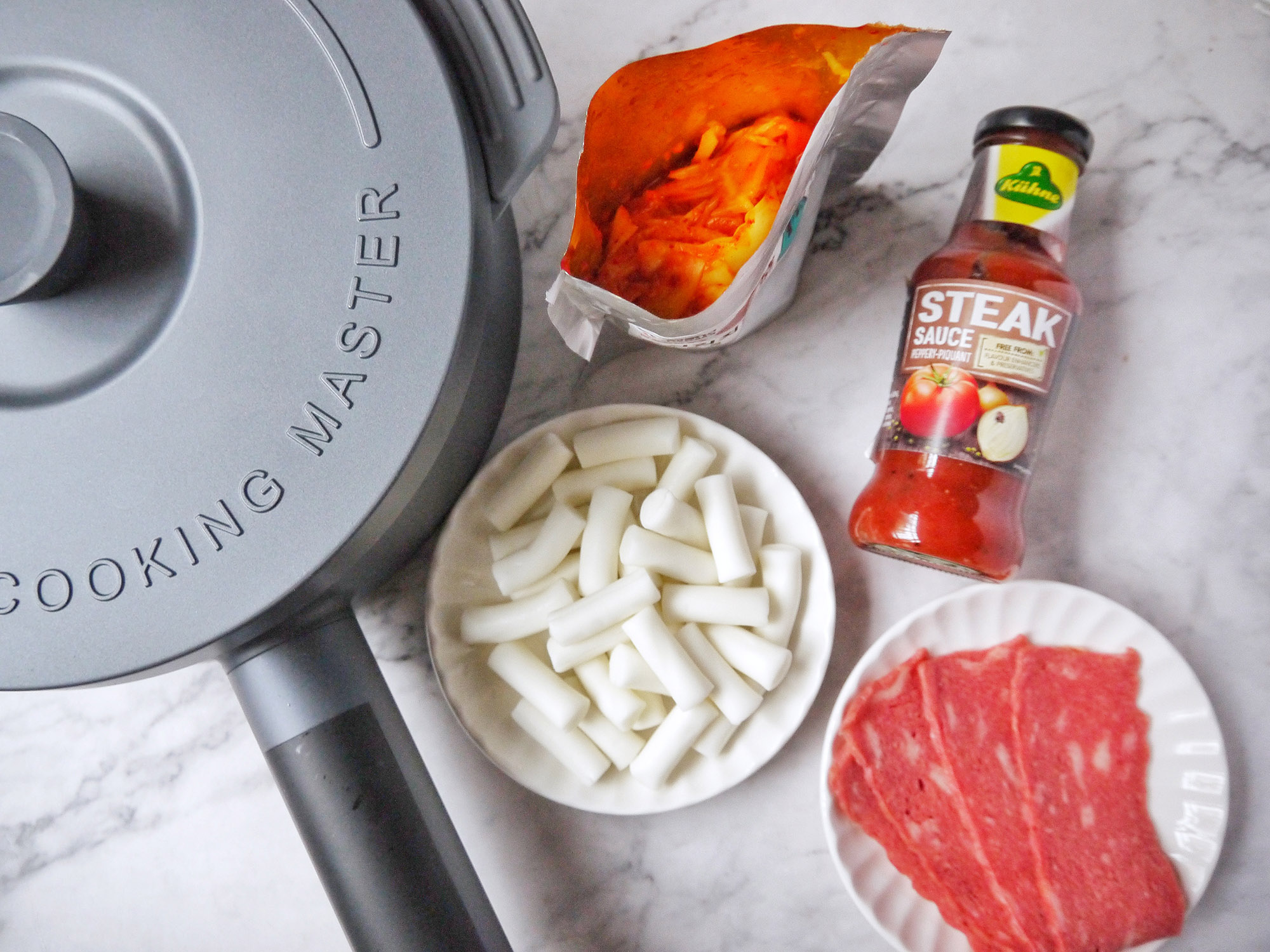 步骤1、年糕洗净,水里煮2分钟后撩出过凉水备用;