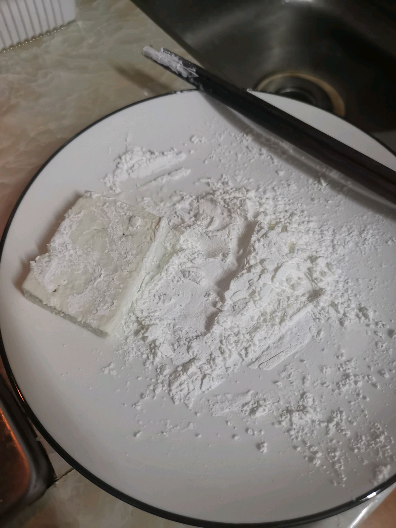 步骤5、豆腐两边粘上玉米淀粉