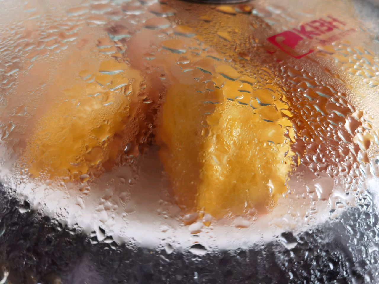 步骤10、关火后不要打开盖子,焖5分钟。揭盖子的时候,盖子向一侧倾斜,里面的水蒸气不要滴在刀切上。