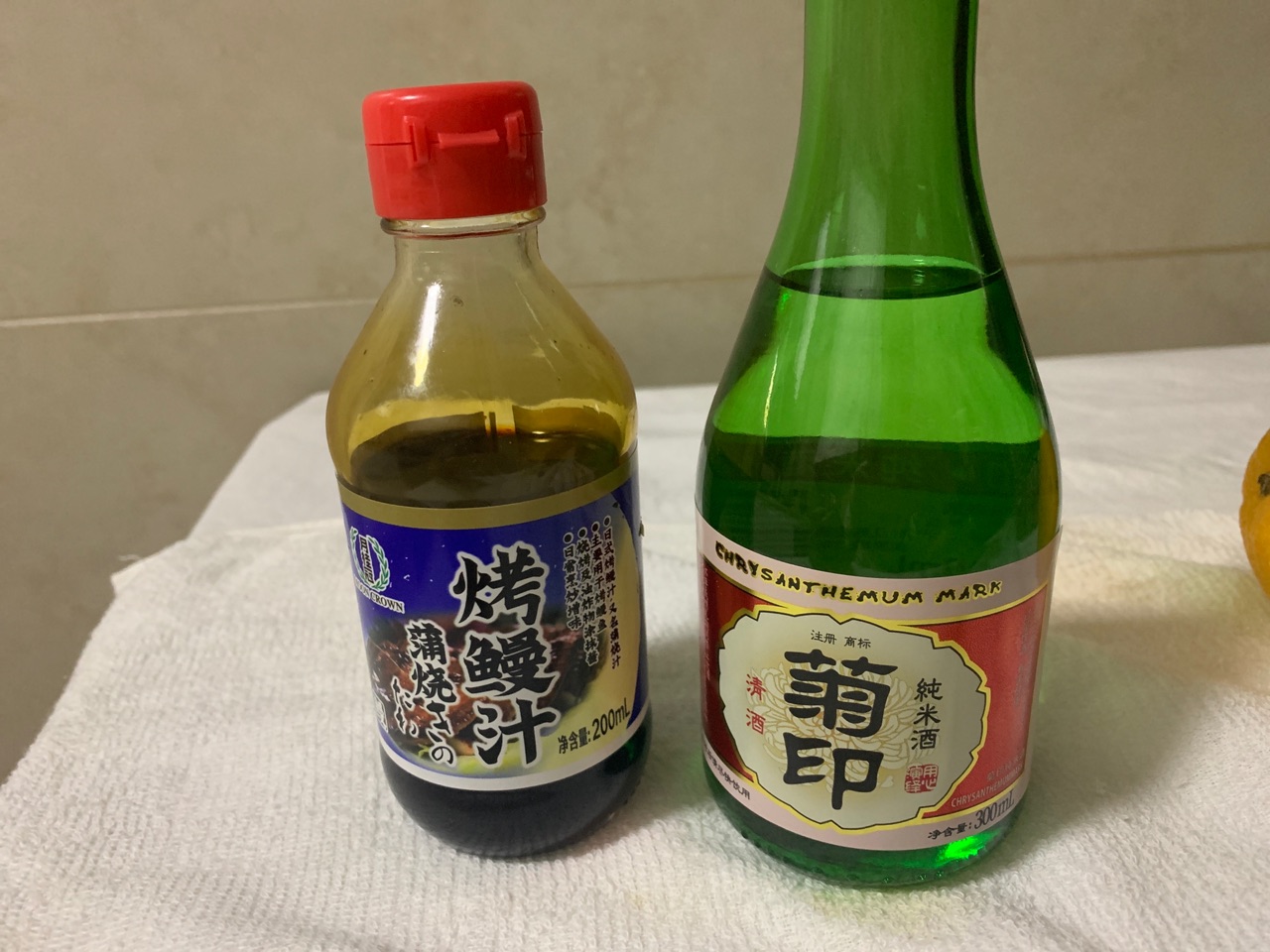 步骤16、这是我用到的清酒和浓缩鳗鱼汁