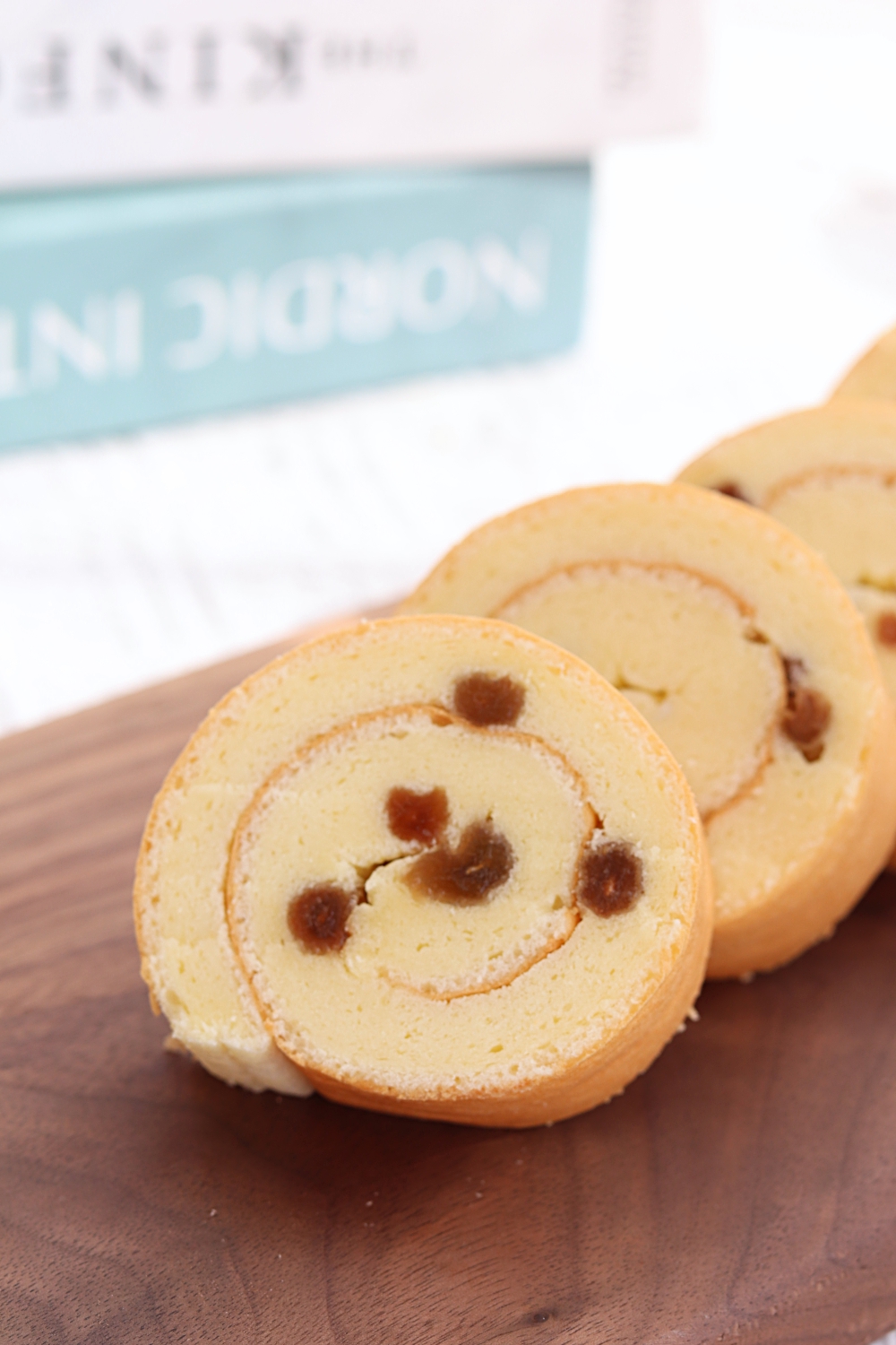 步骤13、温热的时候,拿出一个擀面杖卷起纸的一边,慢慢卷起来,卷好蛋卷后静置10分钟后打开,就可以拿刀切片可以吃了,味道不错的哟。