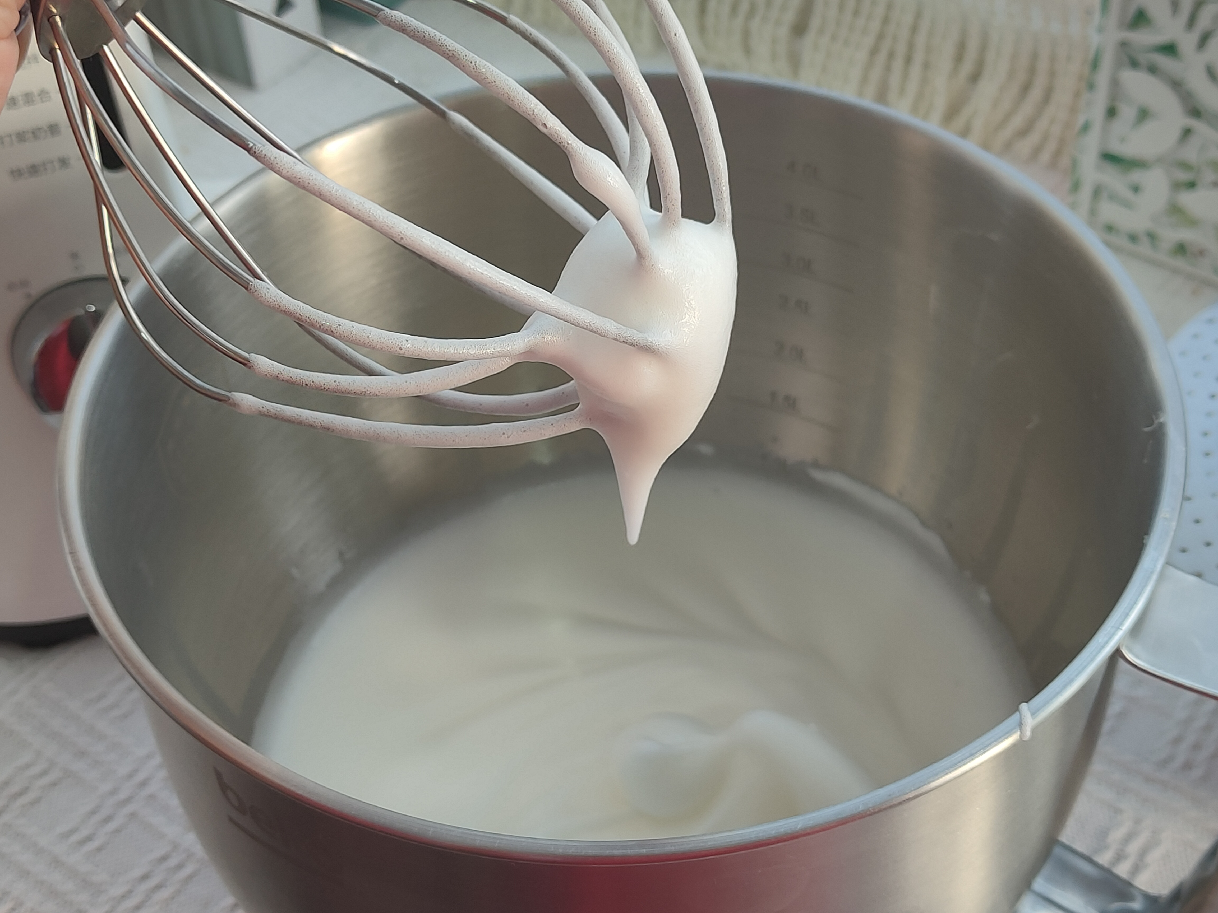 步骤7、蛋白状态达到戚风蛋糕的八成即可。