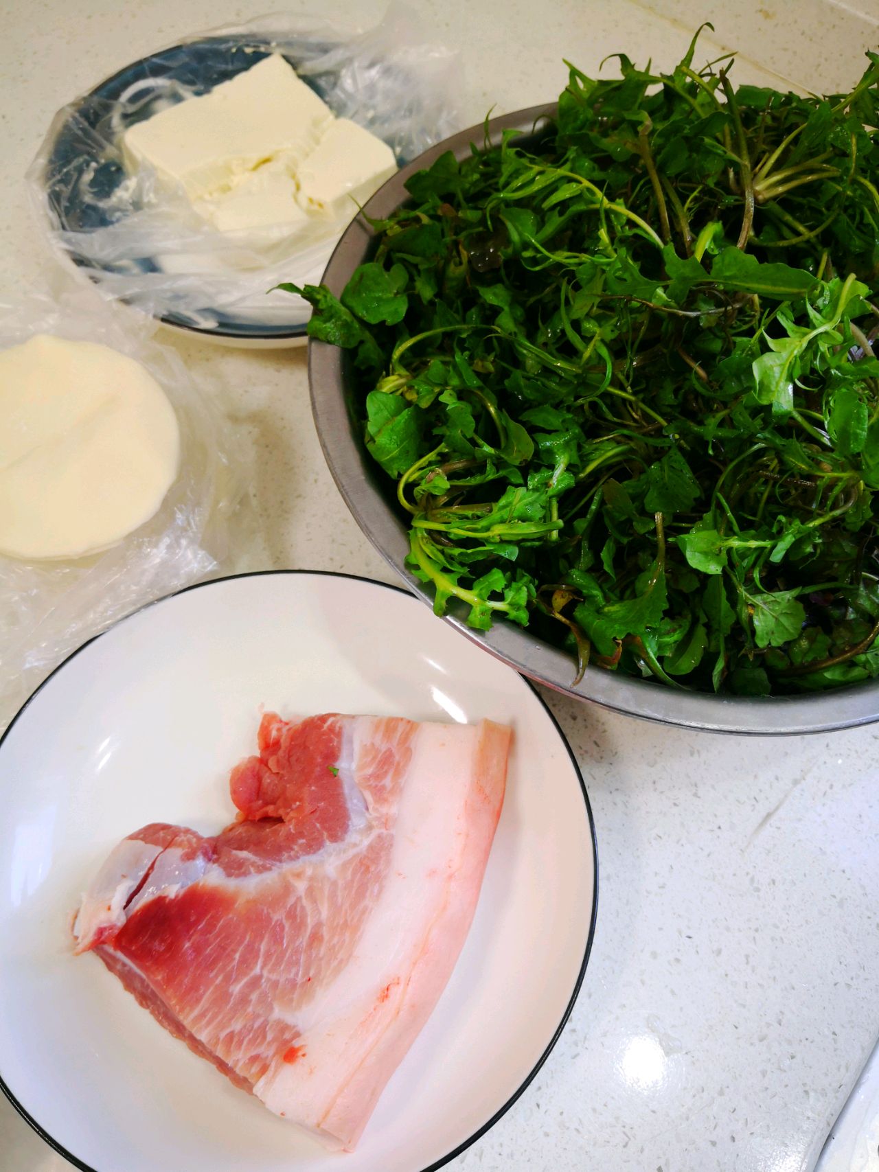 辅料:后腿肉250克、荠菜400克、豆腐100克