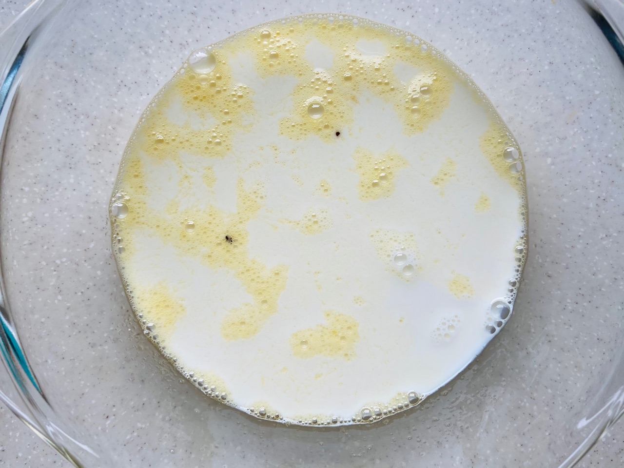 步骤2、搅散鸡蛋加入糖粉搅匀