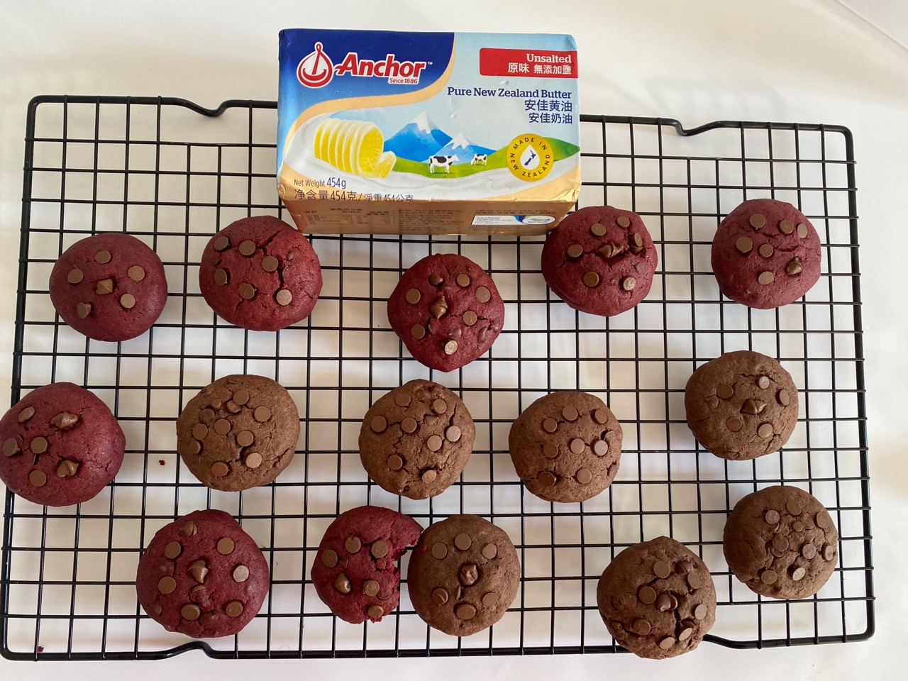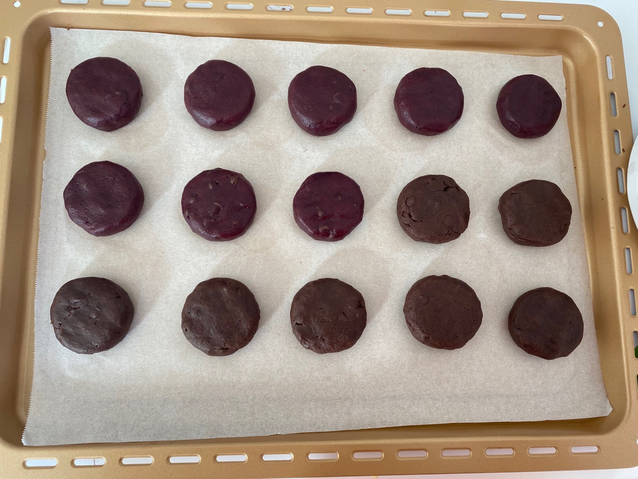 步骤11、摆入烤盘中,巧克力口味做法一样,烤箱预热