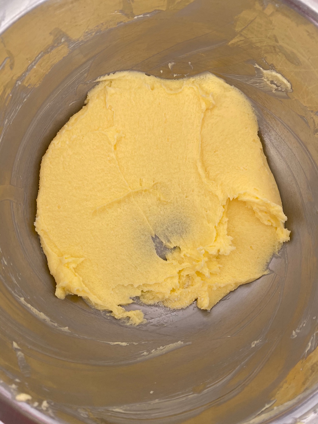 步骤6、混合好的黄油糊分成两份